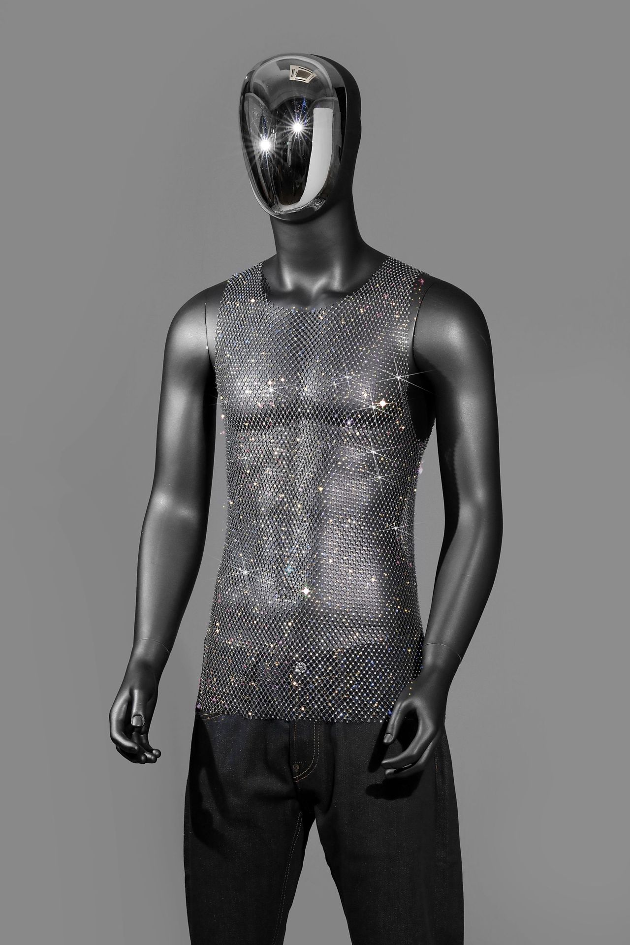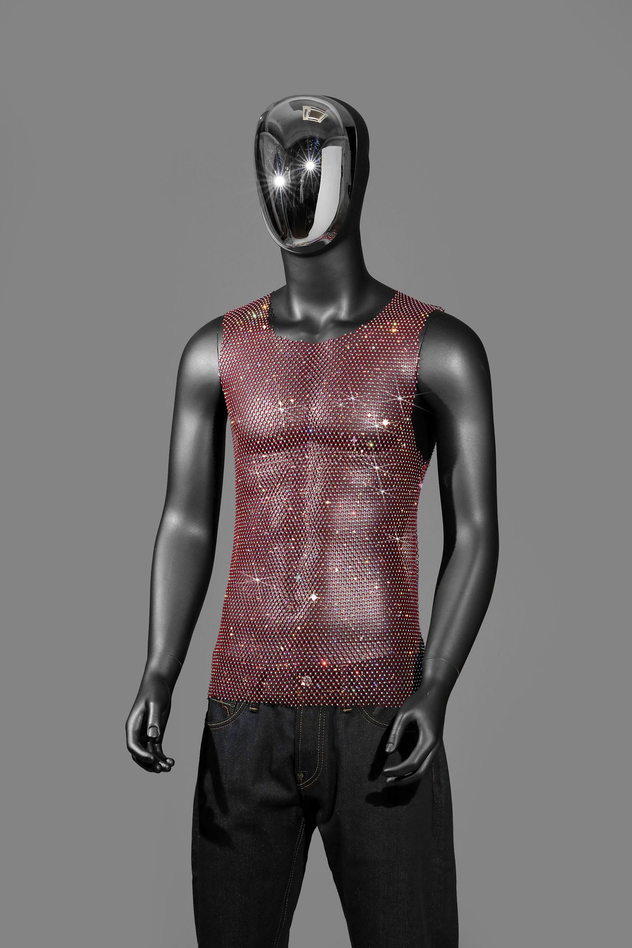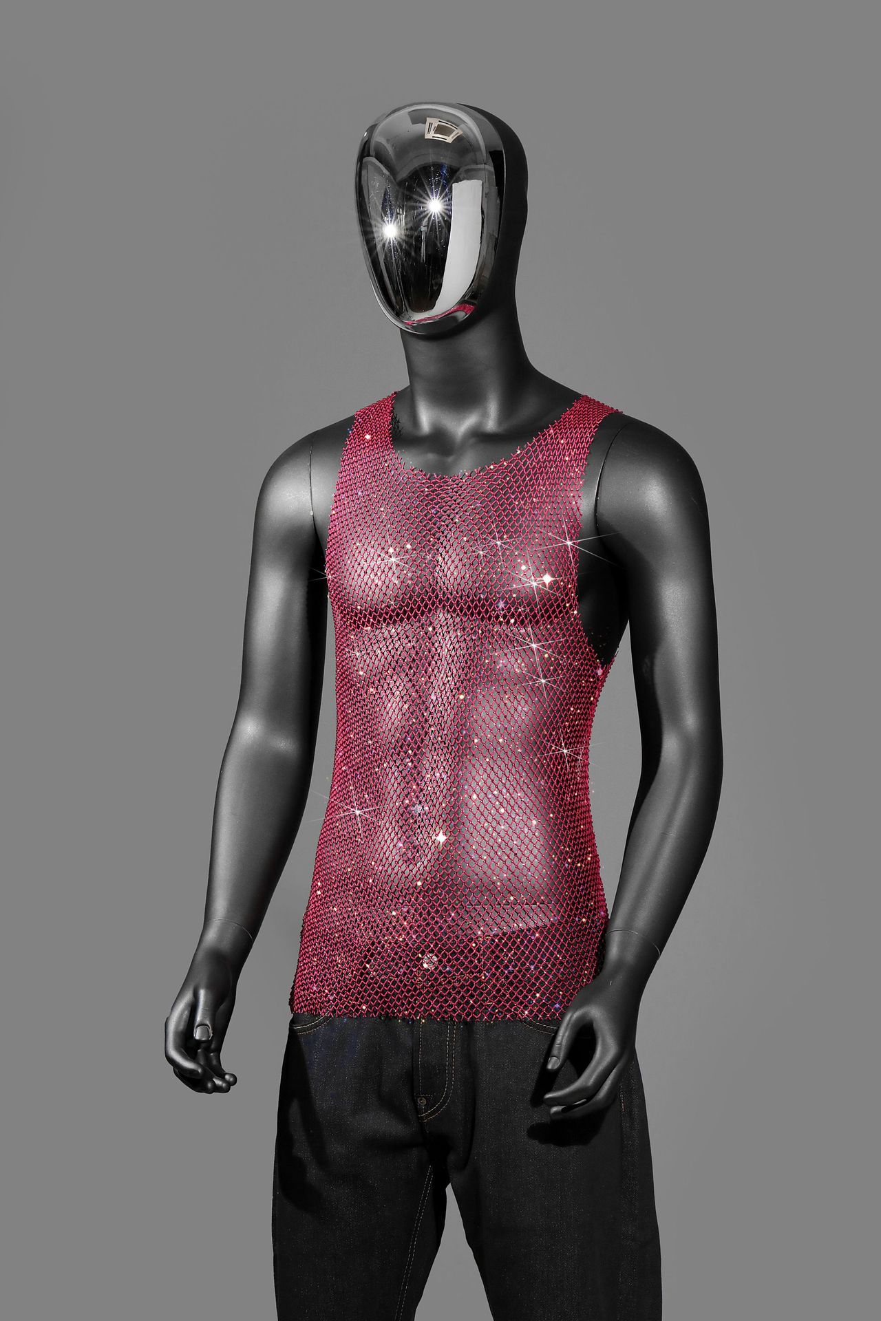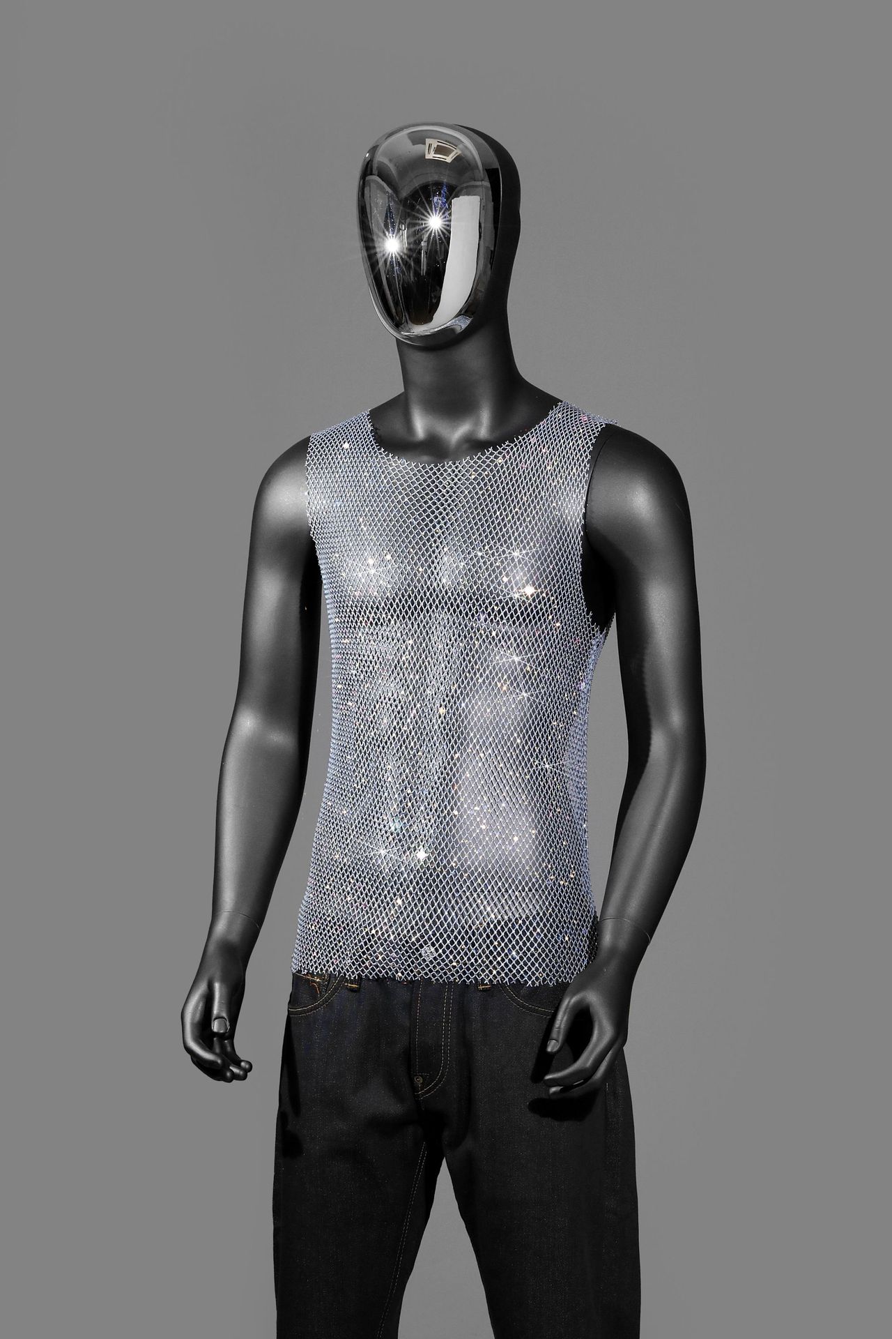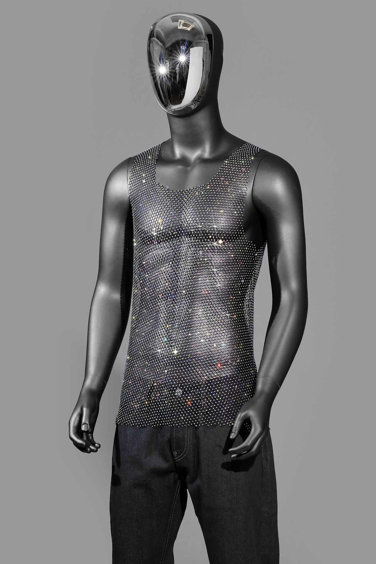Главная страница > Amazon, европейский и американский мужской эластичный сетчатый топ с бриллиантами и вырезами, тонкий топ со стразами, вечерняя одежда, жилет для ночного клуба