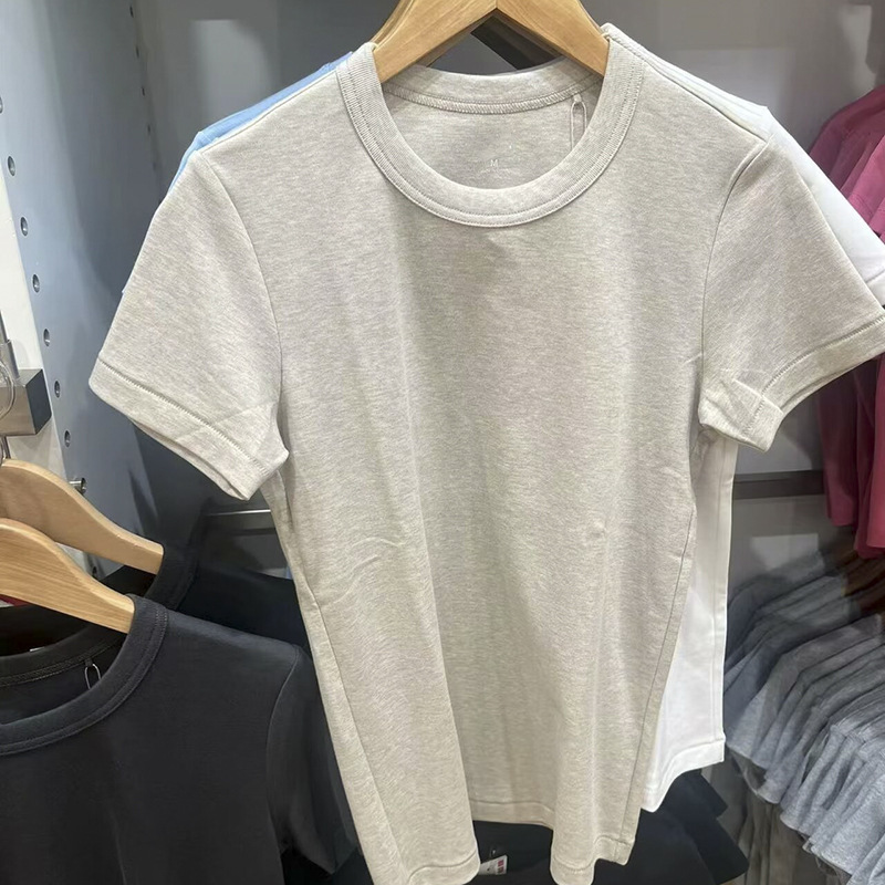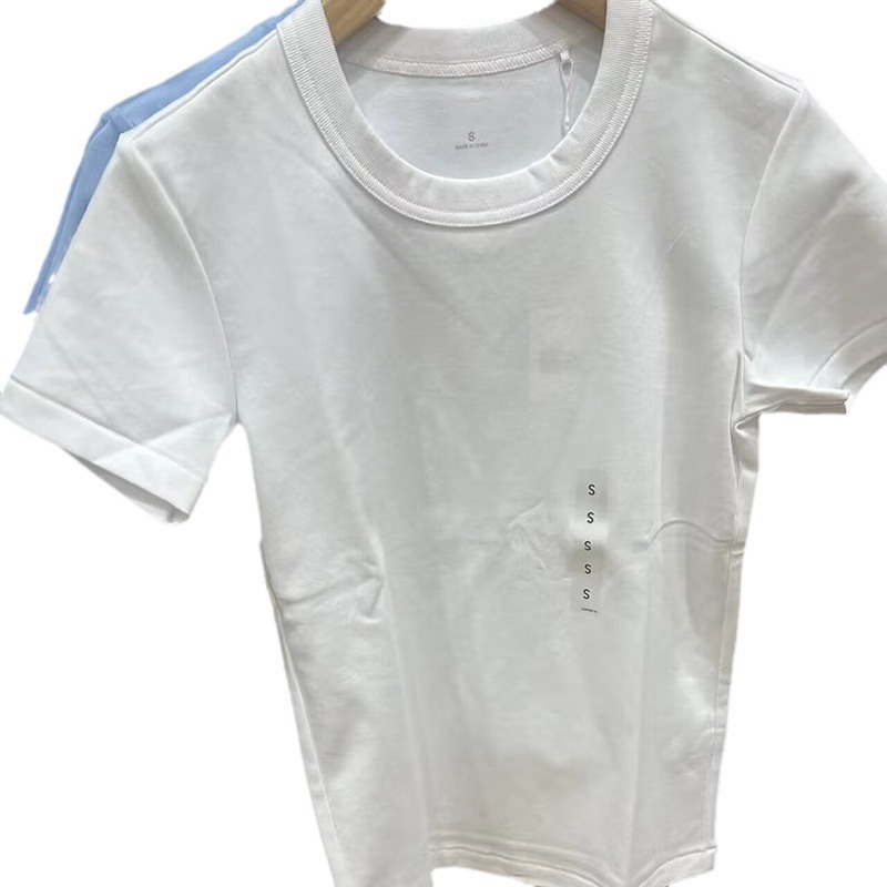 Главная страница > Хороший T футболка с круглым вырезом женская короткая рукава плечо 2024 лето новый белый сплошной универсальный топ 465754