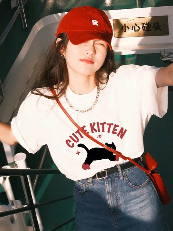 Главная страница > Белая футболка женская рубашка с короткими рукавами летнее плечо с половиной рукава 2025 новый хлопковый нижний рубашка нишевая рубашка свободного блузки