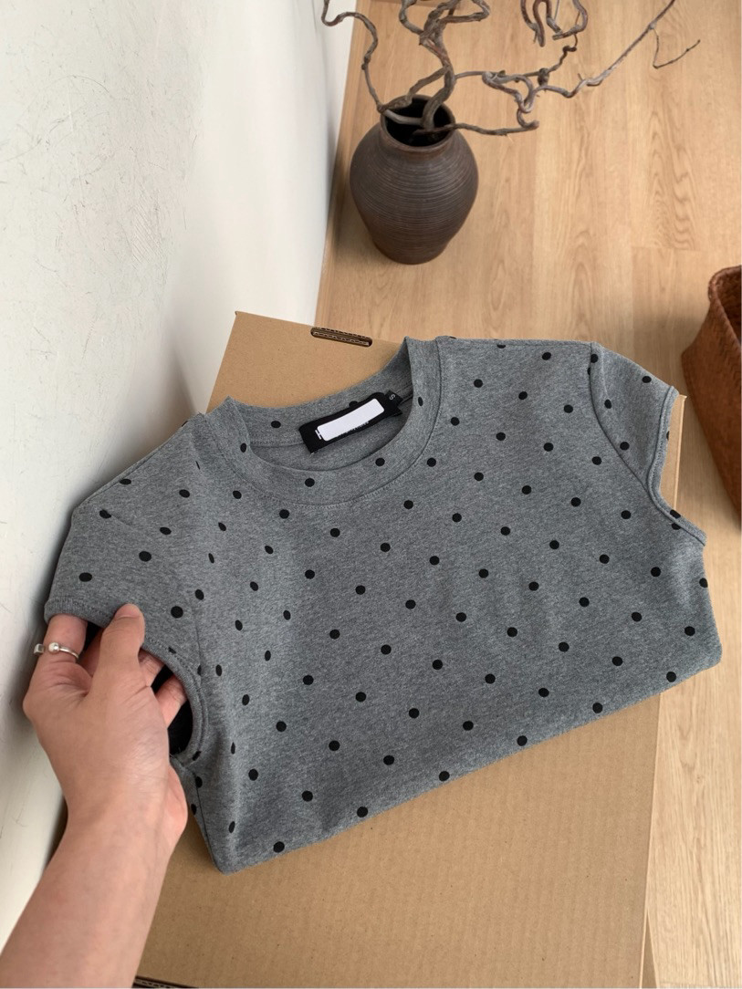 Главная страница > Дизайн шикарная точка с положительным плечом футболка с короткими рукавами летняя хлопчатобумажная рубашка тонкая и сладкая горячая девушка на одежде