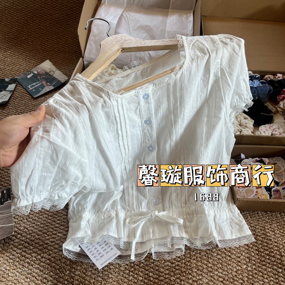 Главная страница > BM стиль Zhang Yuanying, кружевная рубашка с кукольным воротником и пышными рукавами, женская футболка с короткими рукавами, летний топ