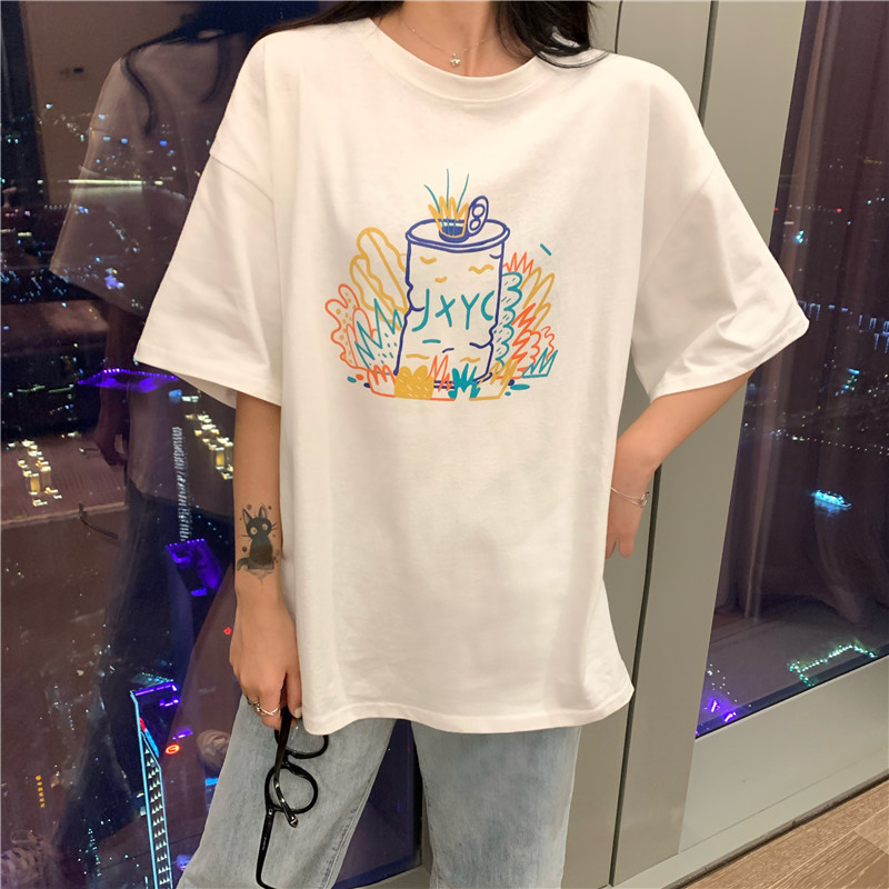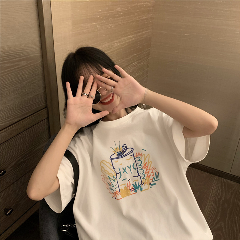 Главная страница > Новая студенческая подруга черно-белая пара наряд 2023 Летний круглый вырез свободный топ гонконгский стиль повседневная футболка женская короткая рукава