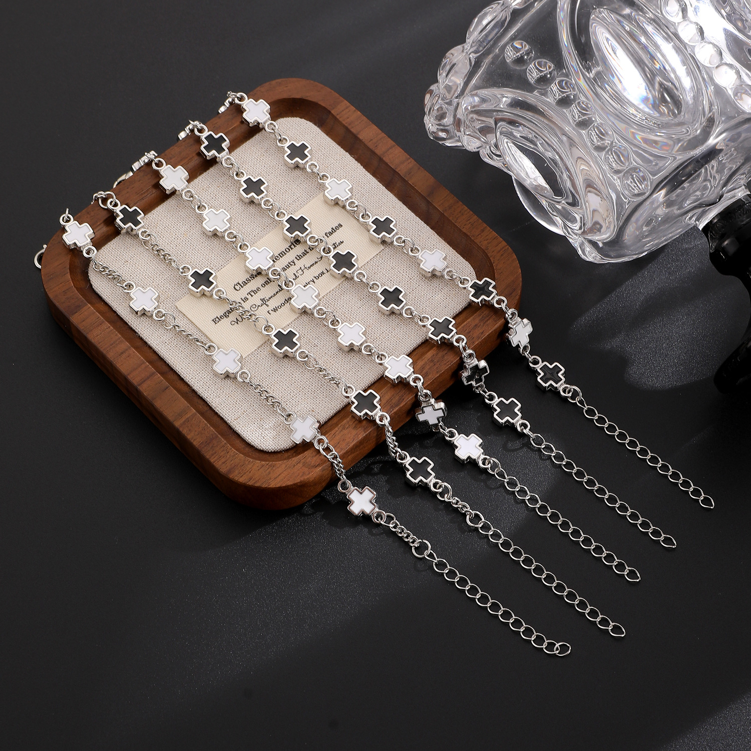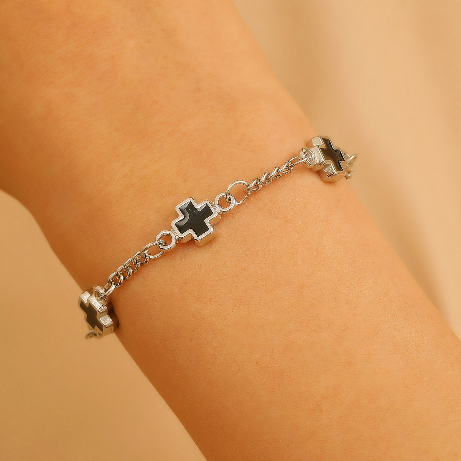 Главная страница > Европейская и американская французская мода, черно-белый браслет с крестом, модный стильный мужской и женский браслет в одном стиле, доступный роскошный дизайн, ювелирные изделия ручной работы
