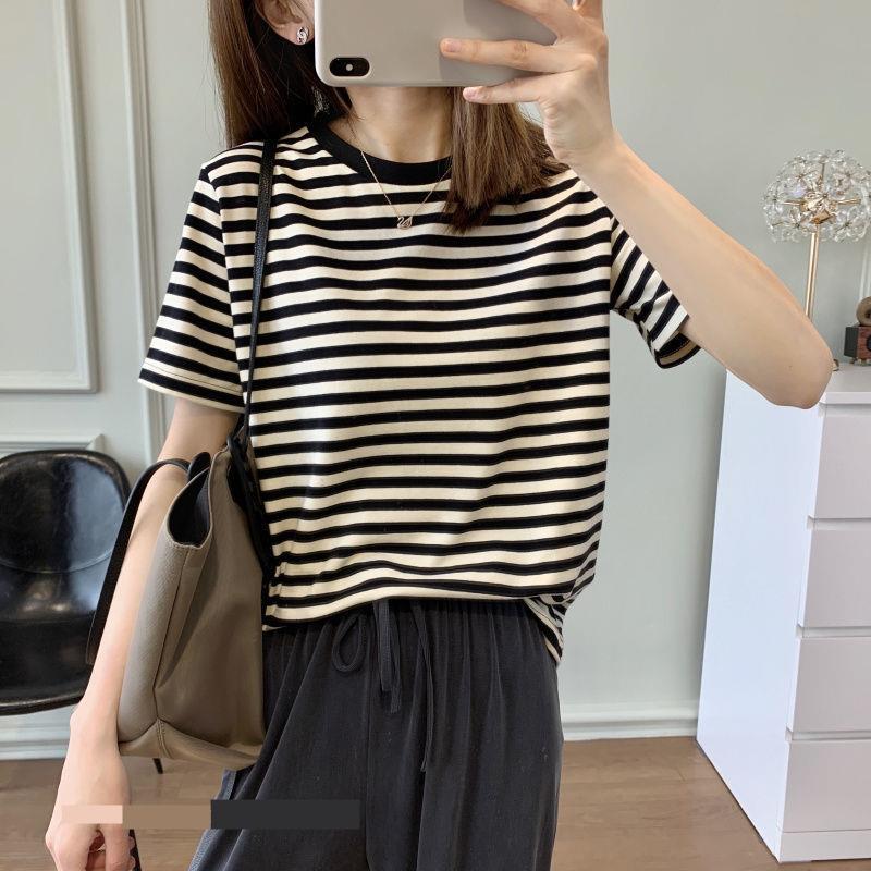 Главная страница > Женская футболка в красно-белую полоску, с коротким рукавом, новая летняя модель 2024 года, омолаживающая, свободная, стильная, осветляющая, модная и популярная в Instagram.