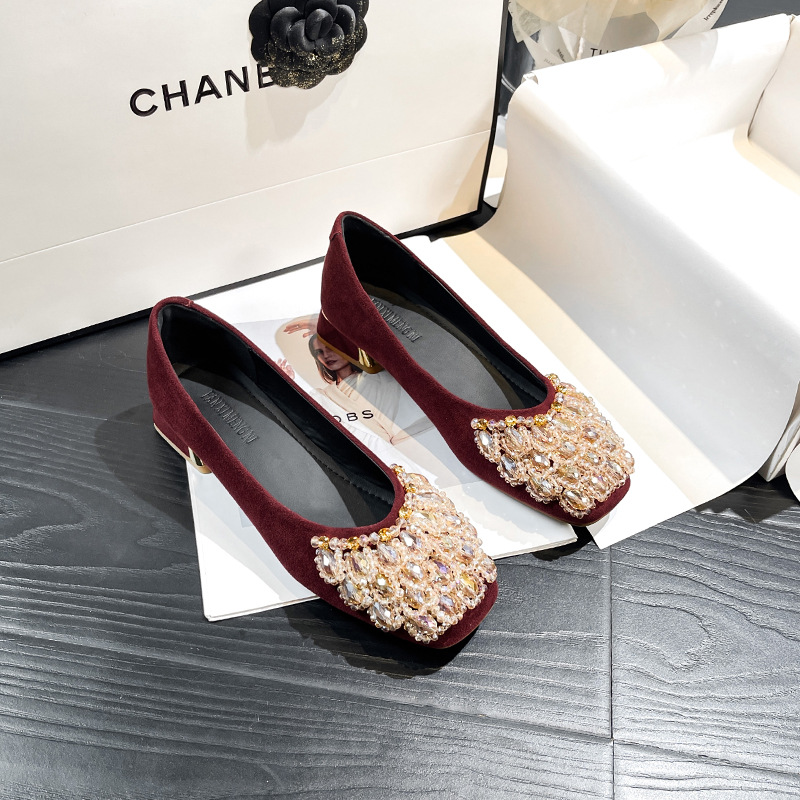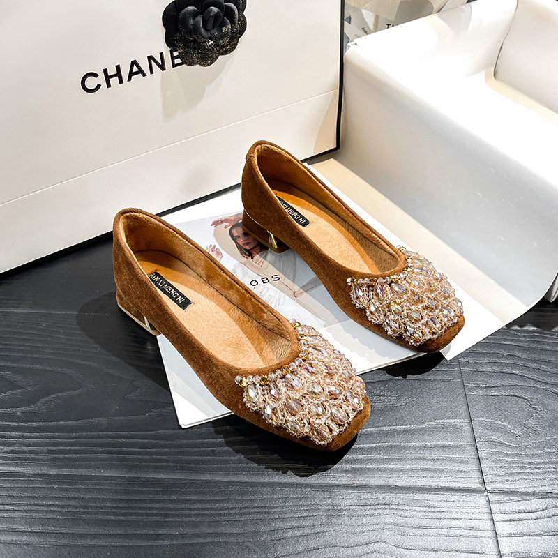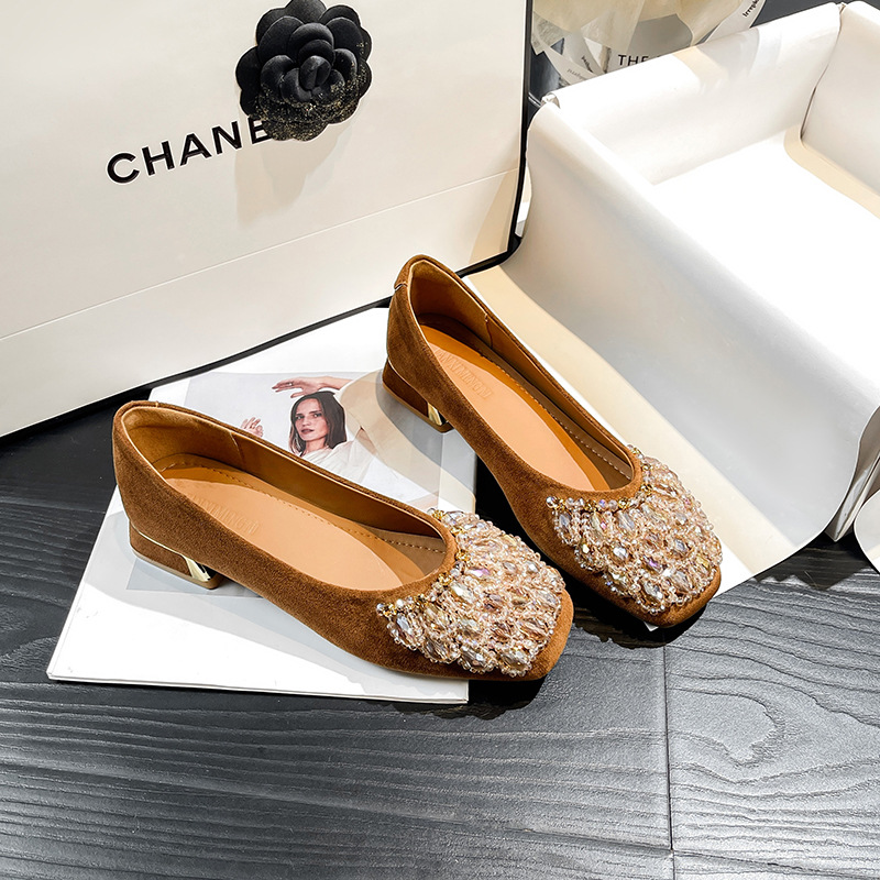Главная страница > Туфли женские 916-2 с квадратным носком, неглубоким вырезом, стразами, на массивном каблуке, большие размеры, весна 2024, новая модная коллекция, свадебные туфли