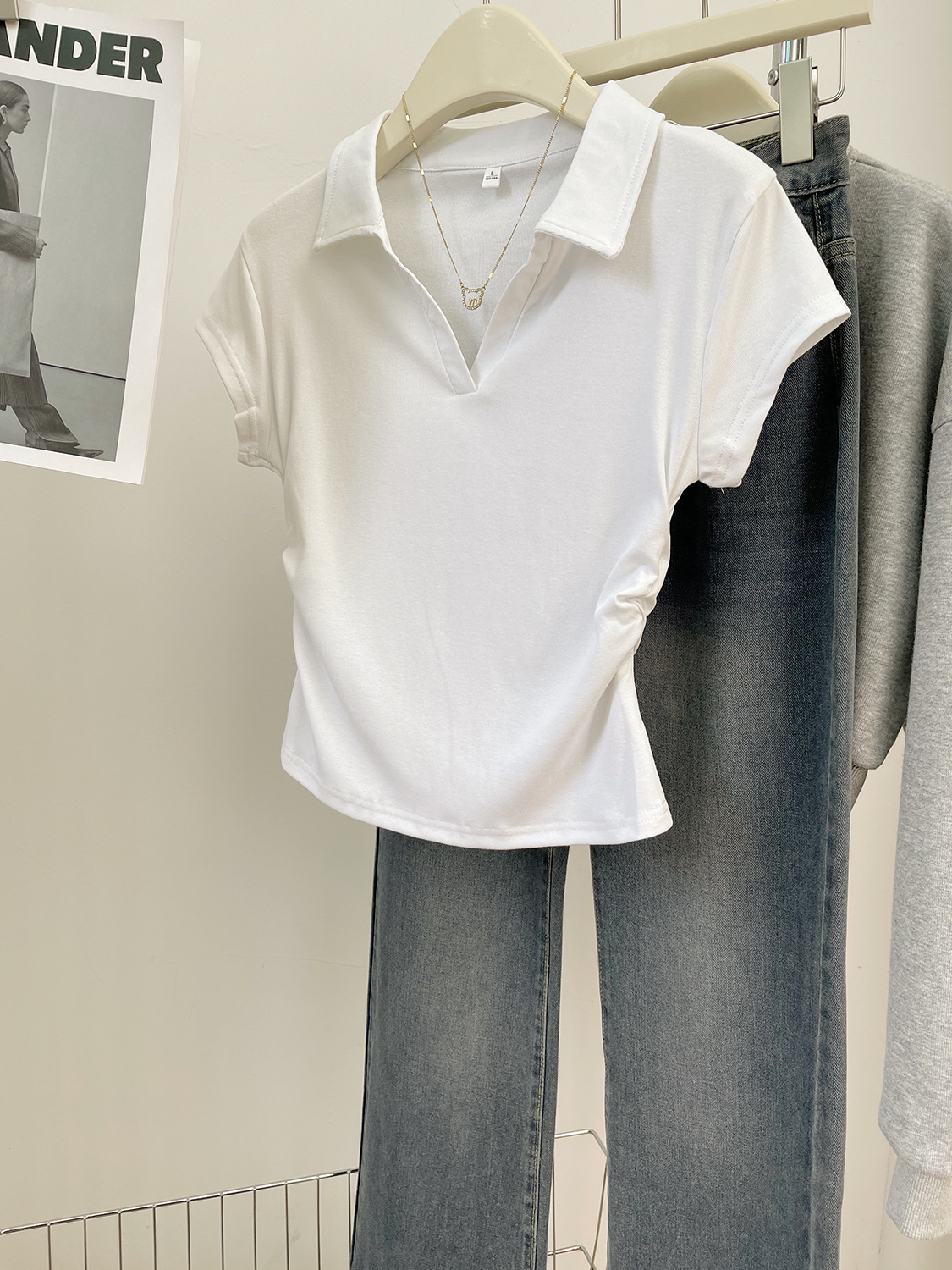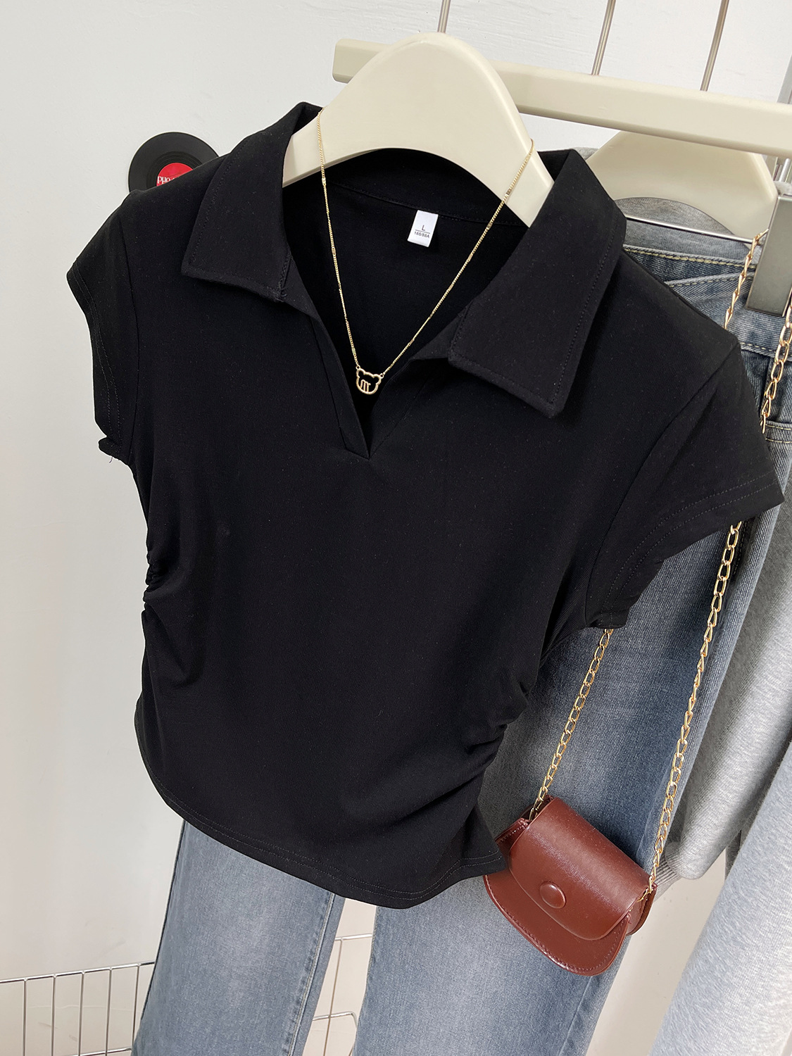 Американский короткий воротник поло с положительным плечом с короткими рукавами для женщин с короткими рукавами