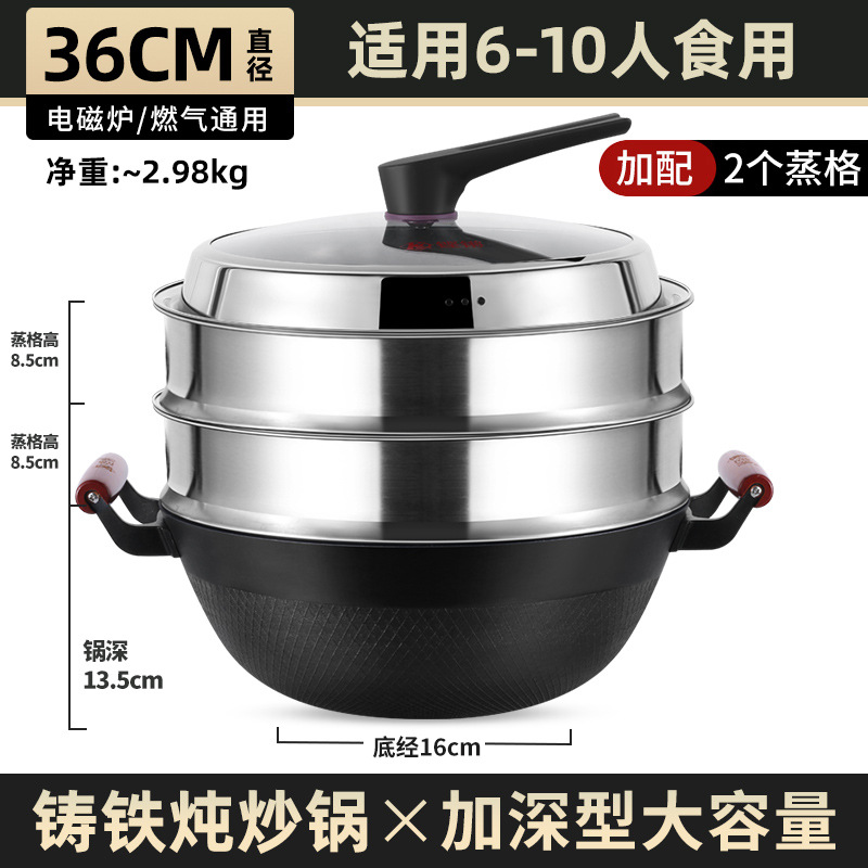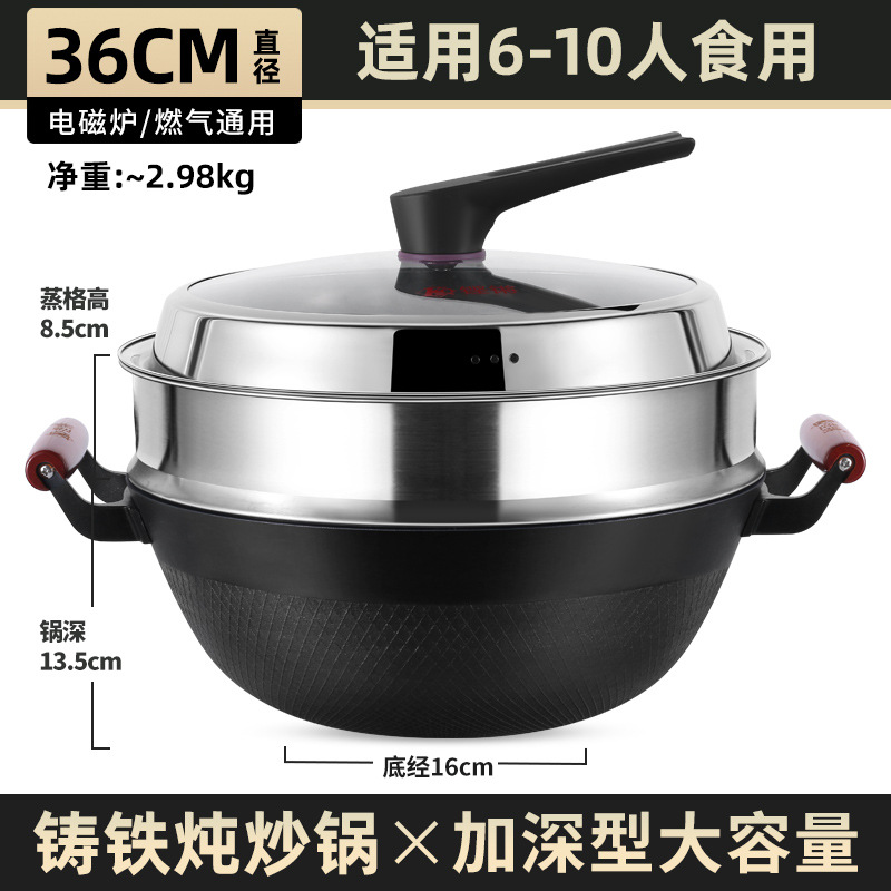 Вок глубиной 36 см [высококачественный чугун] с крышкой и пароваркой