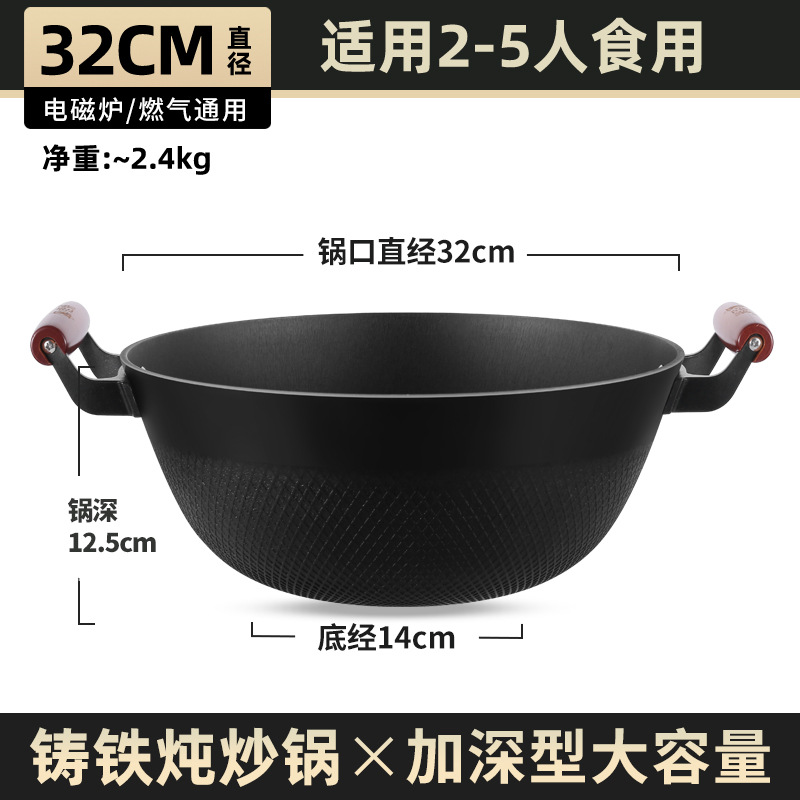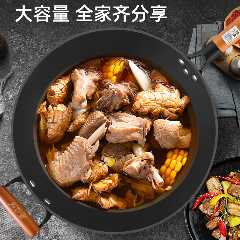 Чугунный вок для углубления бытового старомодного ВОК, ВОК из сырого железа, сковорода с антипригарным покрытием без покрытия для индукционной плиты с плоским дном
