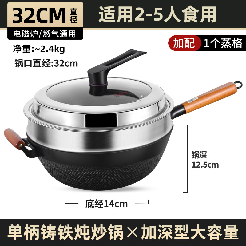 Вок глубиной 32 см [высококачественный чугун] с крышкой и пароваркой