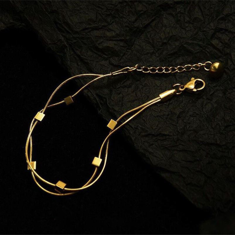 Главная страница > Южная Корея легкий роскошный высококачественный браслет женский простой титановая сталь 18-каратное золото квадратная двухслойная цепочка из змеиной кости ниша дизайн смысл ins