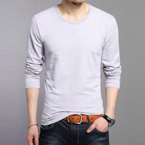 Светло-серый круглый вырез и длинные рукава.