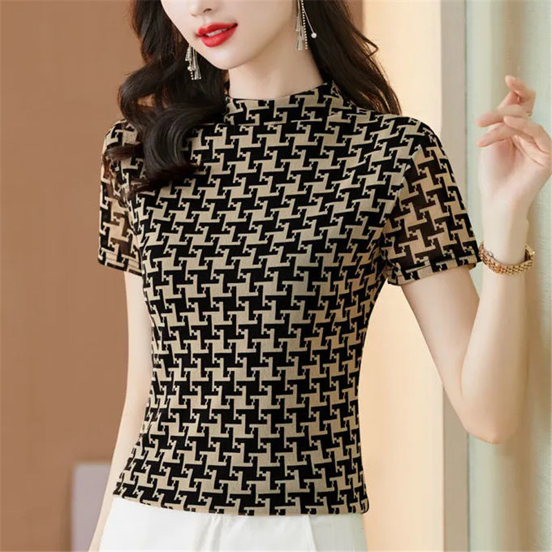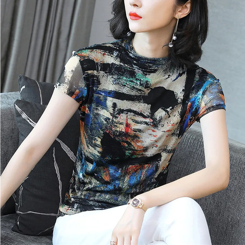 Главная страница > Европейская модная футболка с принтом сетчатая футболка с короткими рукавами