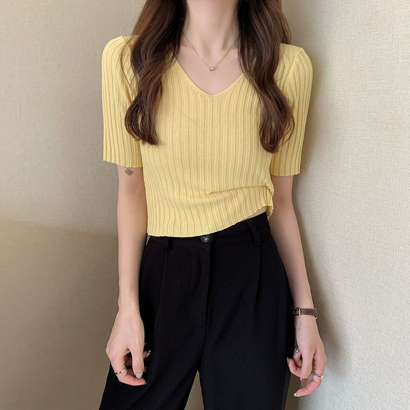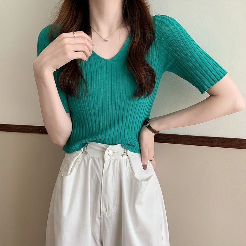 Главная страница > 2024 новый летний тонкий свитер из ледяного шелка с v-образным вырезом