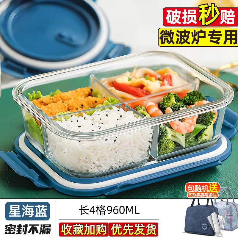 Главная страница > Новый четырехсеточный стеклянный ланч-бокс для офисных работников можно нагревать в микроволновой печи