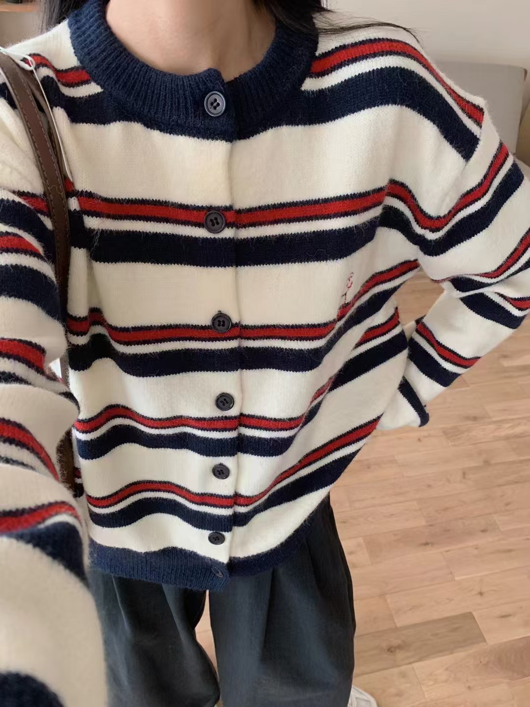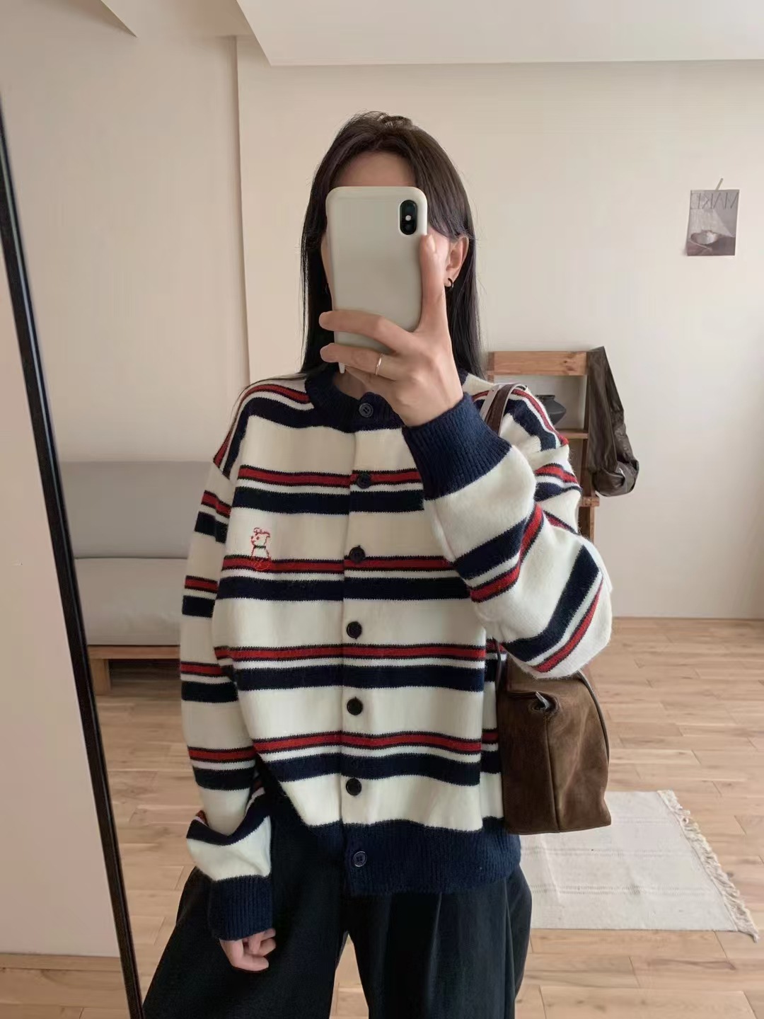 Главная страница > Ранняя осень новый полосатый цвет с вышивкой щенок трикотажный кардиган