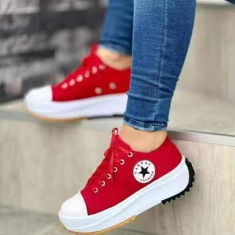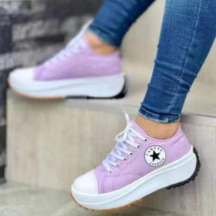 Внешняя торговля, новинка весны 2022 года, однослойные туфли с низким верхом, Женская парусиновая обувь на толстой подошве с круглым носком, женская обувь больших размеров на платформе со шнуровкой