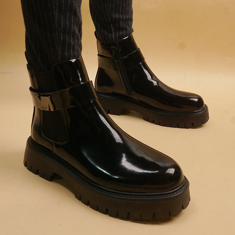 Главная страница > Новый тренд с яркой кожей корейская версия с лакированной кожей с большой головой мужские короткие сапоги мужские сапоги с толстой подошной увеличены 6 см сапоги Martin