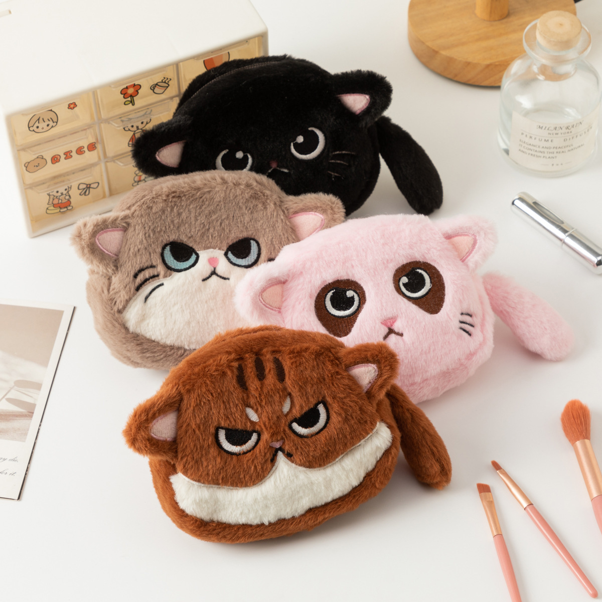 Главная страница > Большой вместительный кошелек для монет с изображением кота, студенческая сумка для хранения канцелярских принадлежностей, плюшевый котенок, сумка для хранения помады, оптовая продажа
