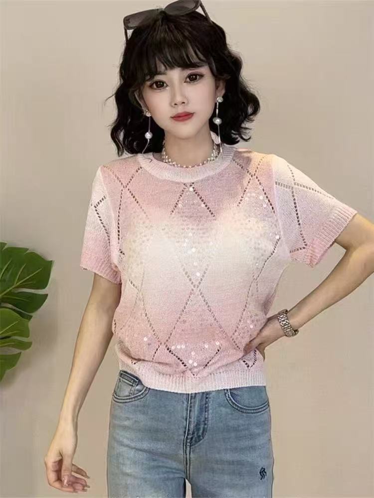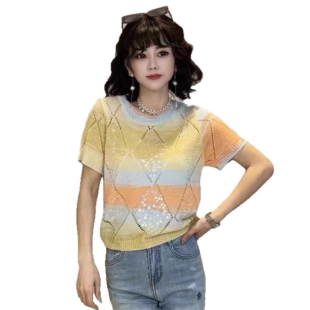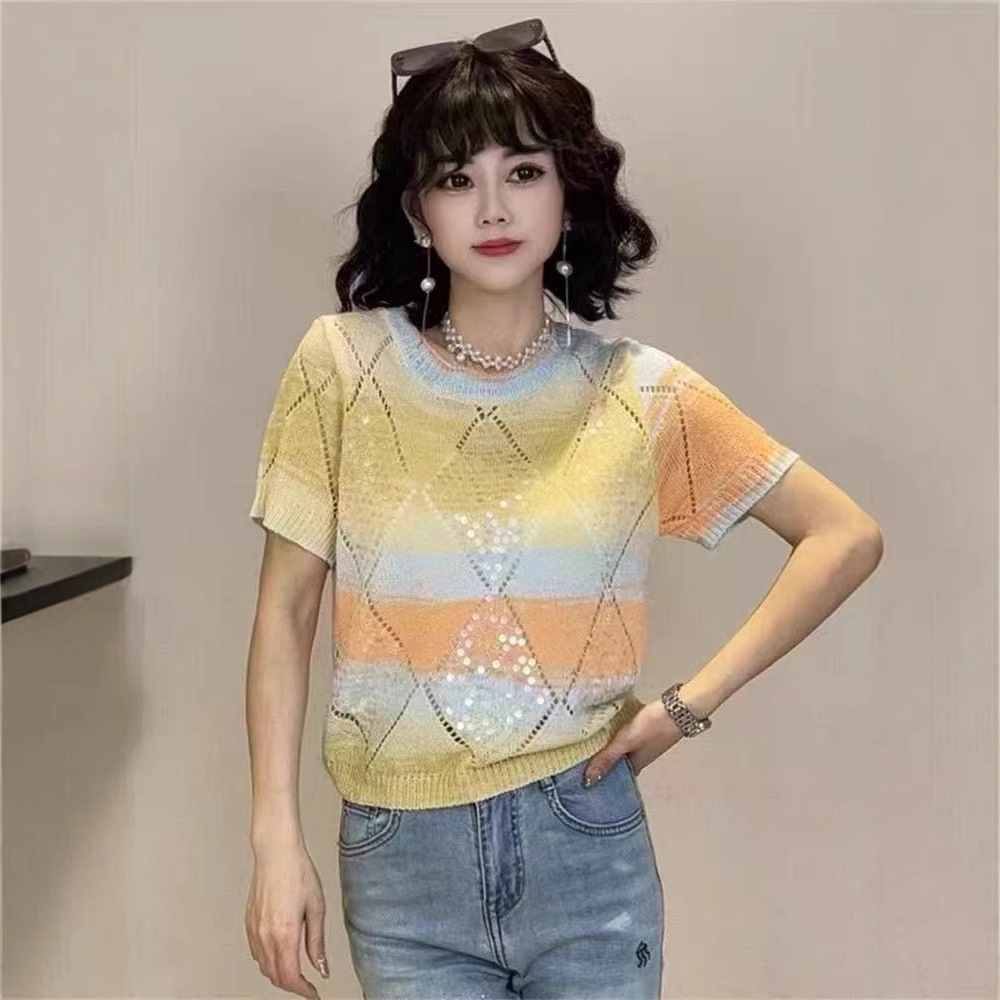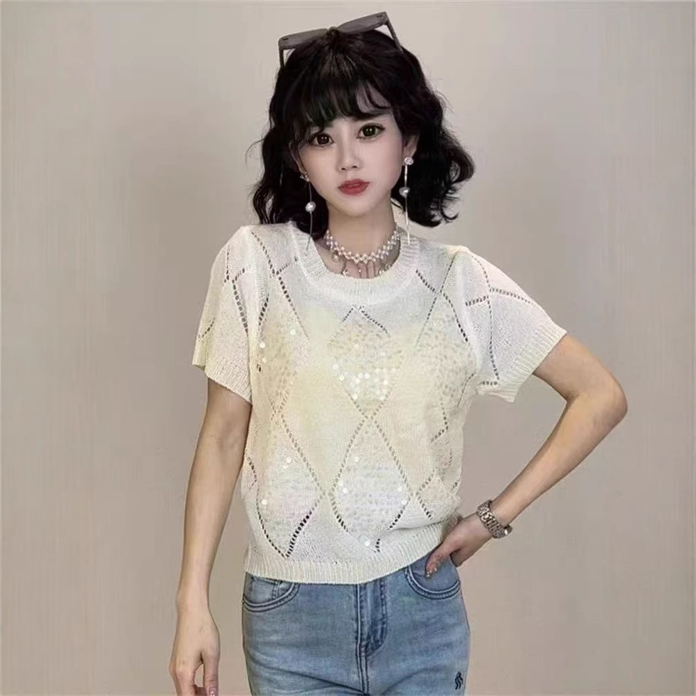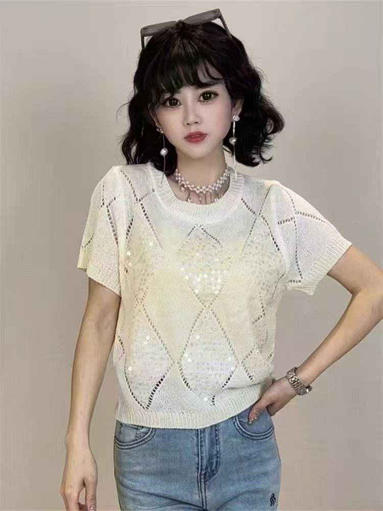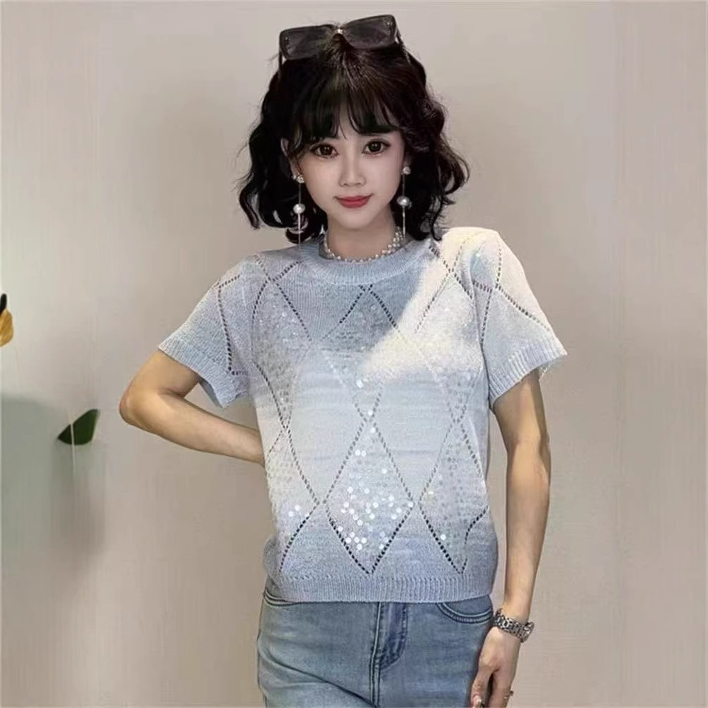 Главная страница > Летний сладкий блеск топ трикотажный футболка с короткими рукавами свободный 2025 новый темпераментный дизайн минус возраст топ
