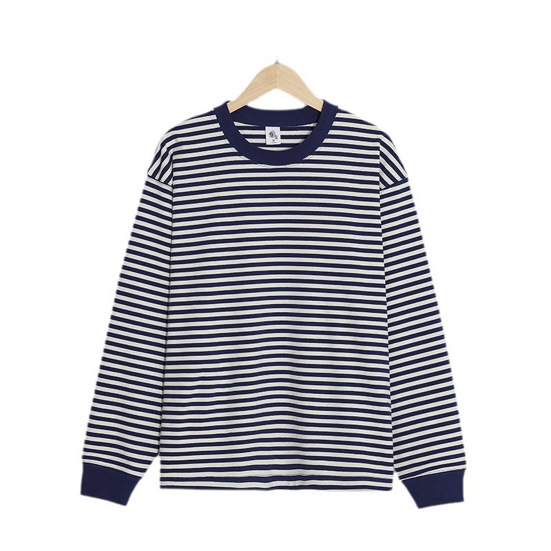 Главная страница > Солнце чувство молодости! 280 г Тяжелая сине-белая полосатая футболка с длинными рукавами для пар, мужская Свободная Повседневная Нижняя рубашка, Женская Осень