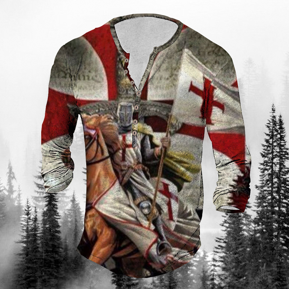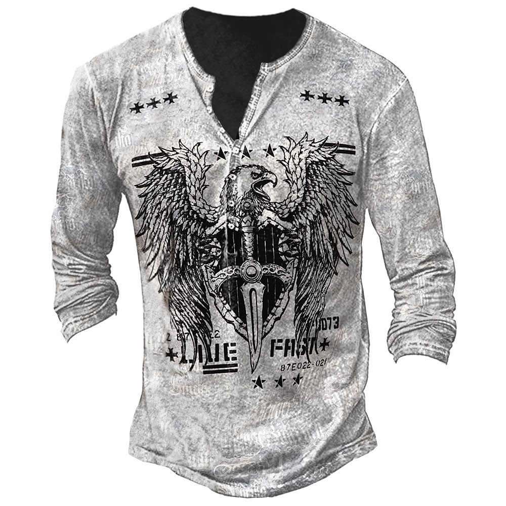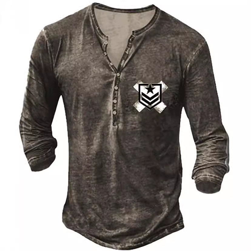 Главная страница > Европейская и американская внешняя торговля, трансграничная модная мужская свободная футболка с длинными рукавами и 7 пуговицами с 3D-узором, рубашка на пуговицах