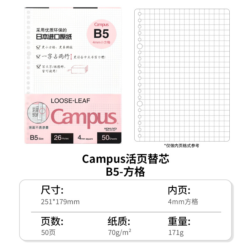 24 года Новое поступление B5/50 страниц, квадратные сетки 9 мм, подходящие для пишущих композиций.
