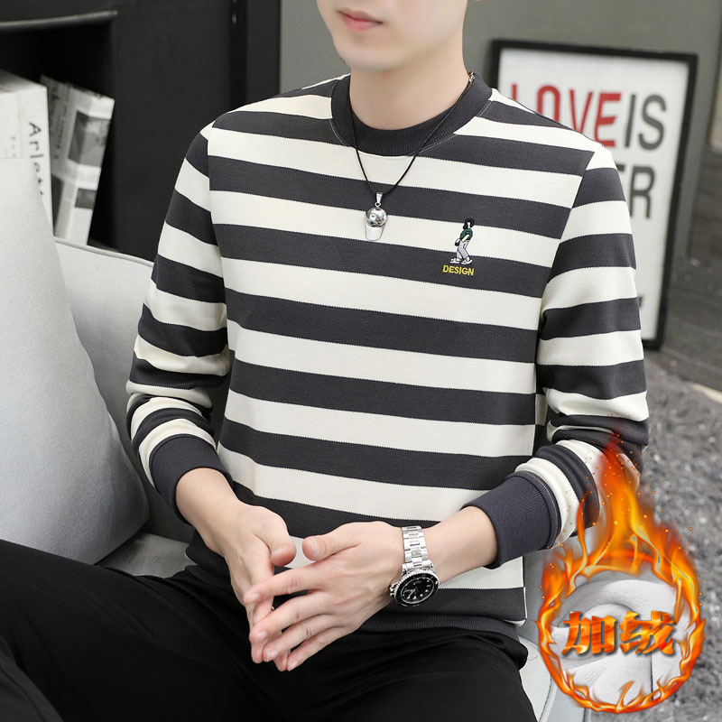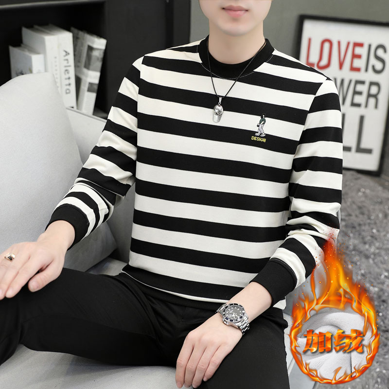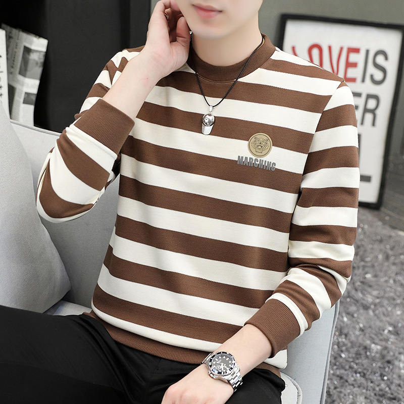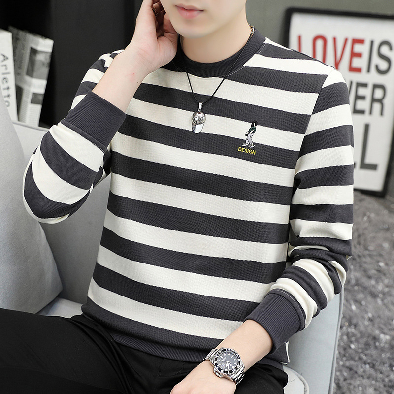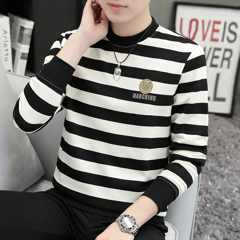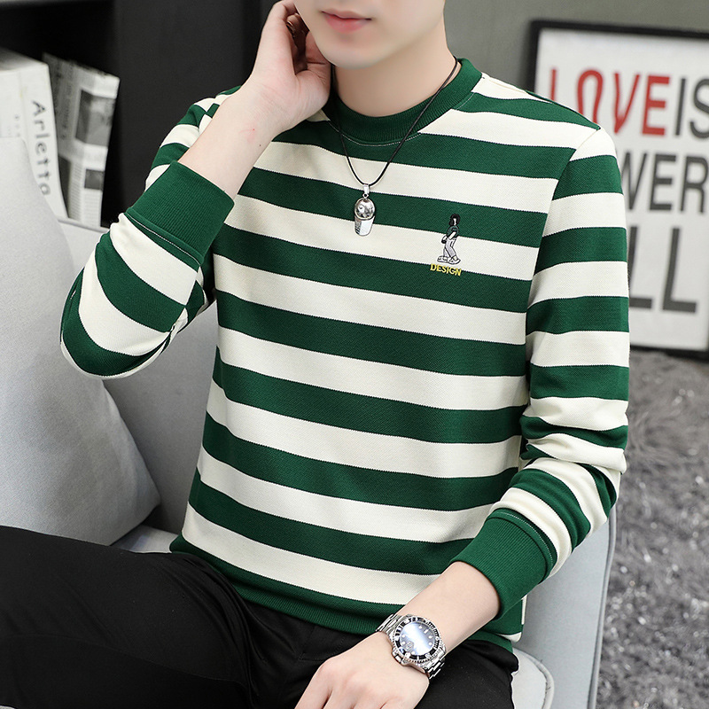 Главная страница > Элитный свитер, Мужская весенне-осенняя модная Базовая рубашка в полоску, футболка, Мужская осенняя одежда, модный брендовый универсальный топ с вышивкой, красивый
