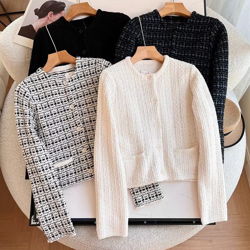 Главная страница > Японская одиночная женская трикотажная короткая куртка 25 ранней весной тонкая с круглым вырезом Qianjinfeng повседневная куртка новый 474981