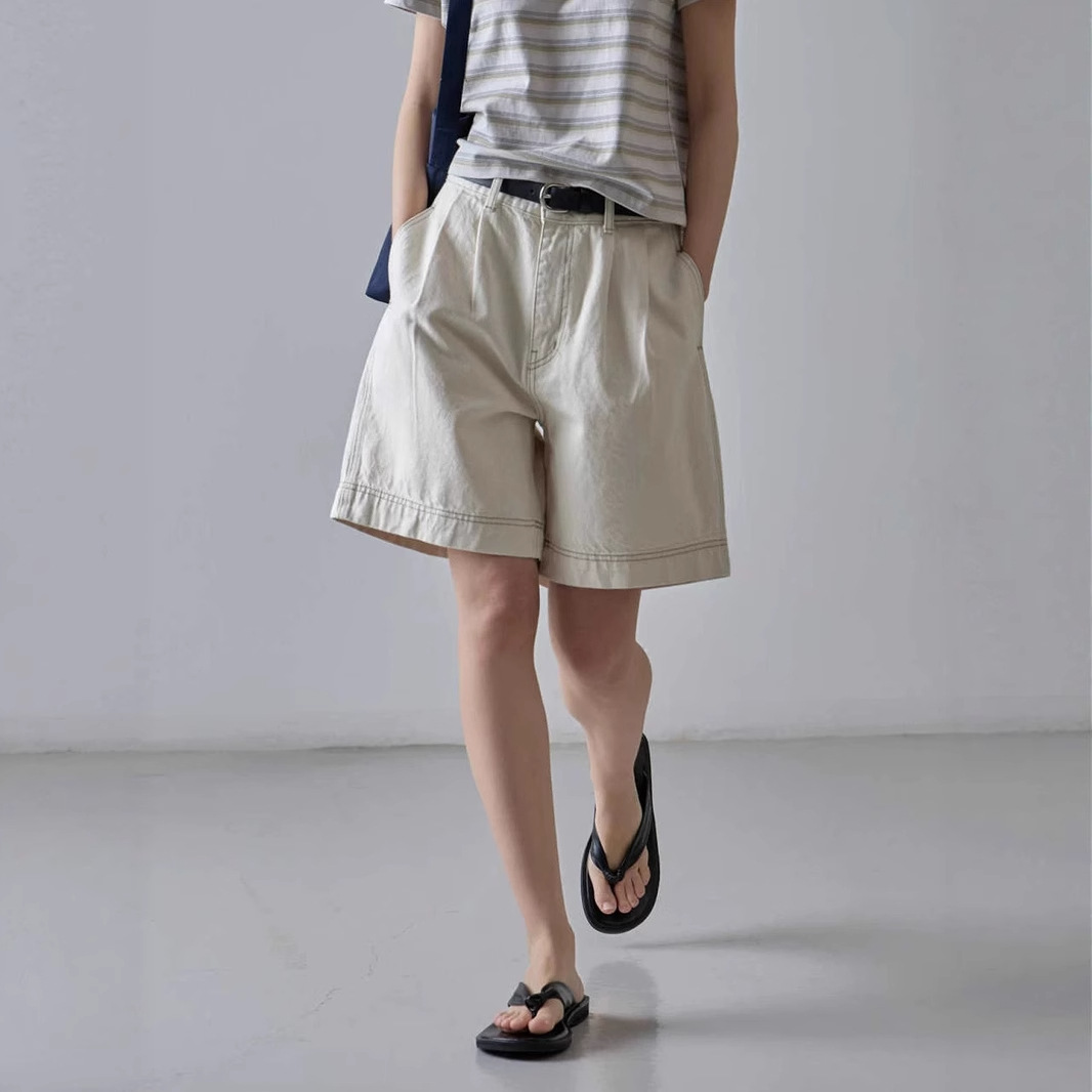 Fac*deP*ttern повседневные шорты женские 25ss весенне-летние новые рабочая одежда в корейском стиле с высокой талией и широкими штанинами с прошивкой