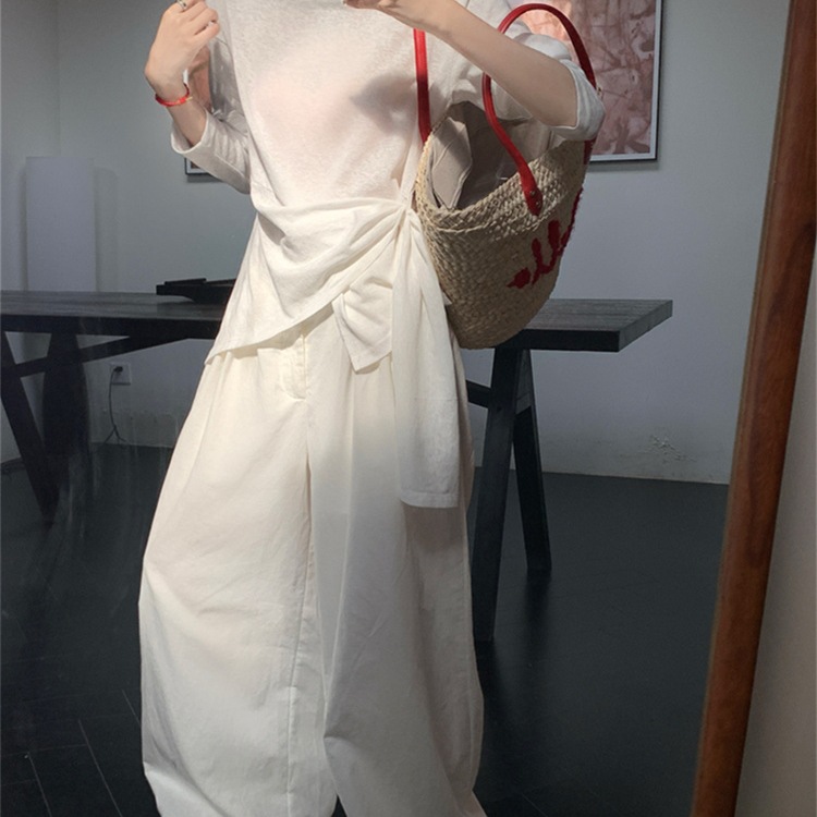 Главная страница > Оригинальная тканевая асимметричная футболка с длинными рукавами в ленивом стиле, белая свободная повседневная женская весенне-летняя новая блузка 25