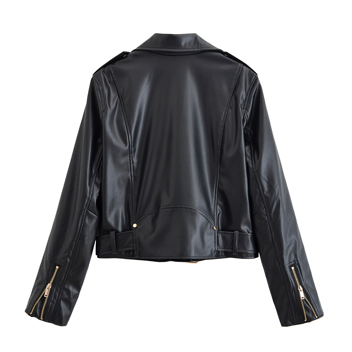 ZARZ 自制 欧美风 新款女装 时髦 休闲 PU机车风皮夹克3046064