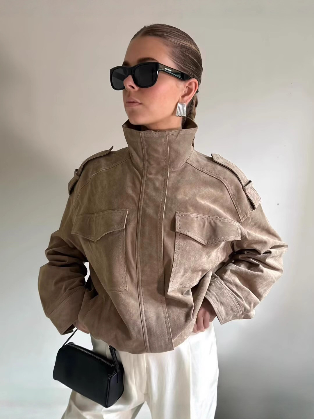 外贸跨境2025秋季 ZA女士时尚街头风立领休闲宽松夹克外套4341770