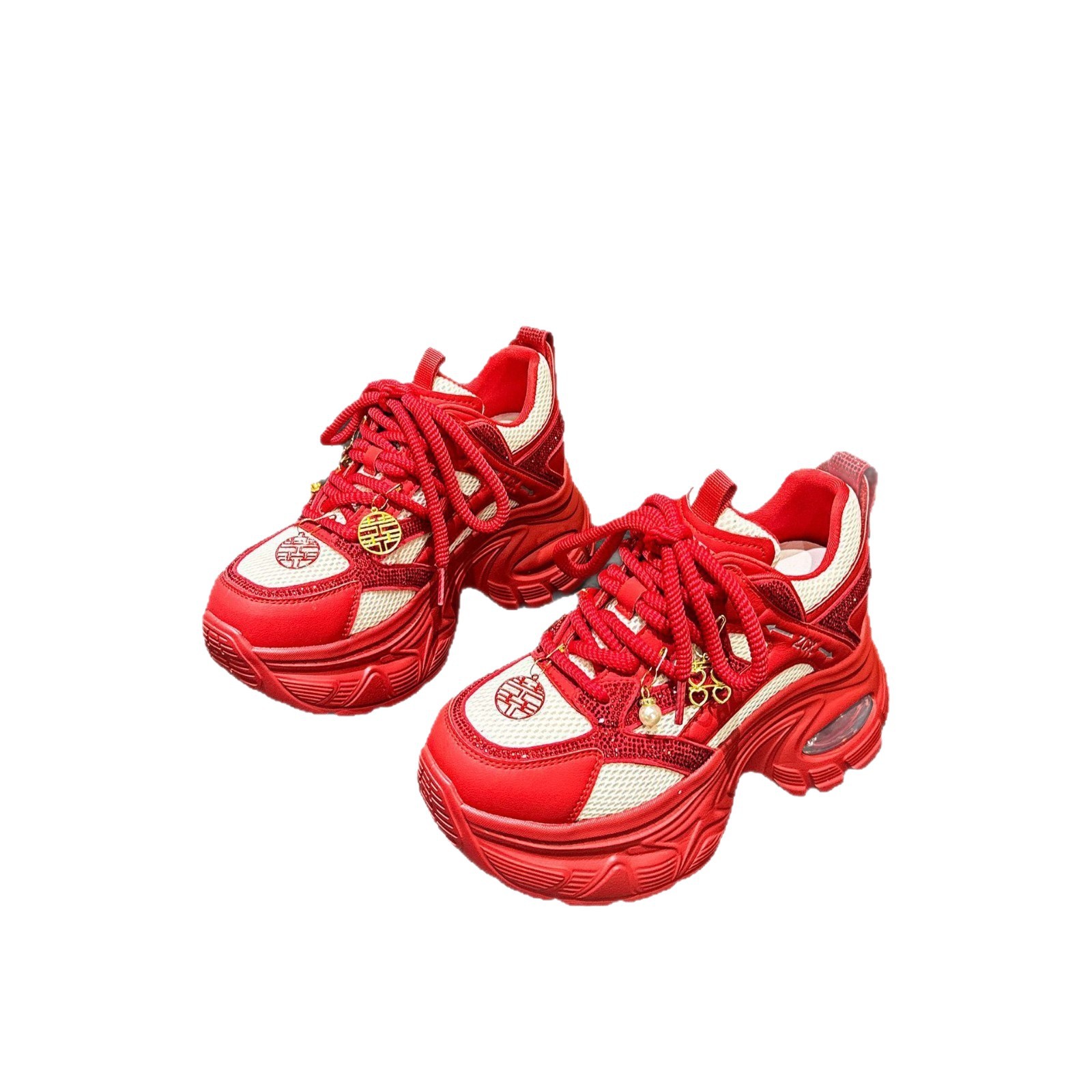 Свадебные туфли Xiuhe для женщин, новая модель 2025 года, красные туфли на высоком каблуке, увеличивающие рост, на толстой подошве, спортивные туфли для подружек невесты и невесты