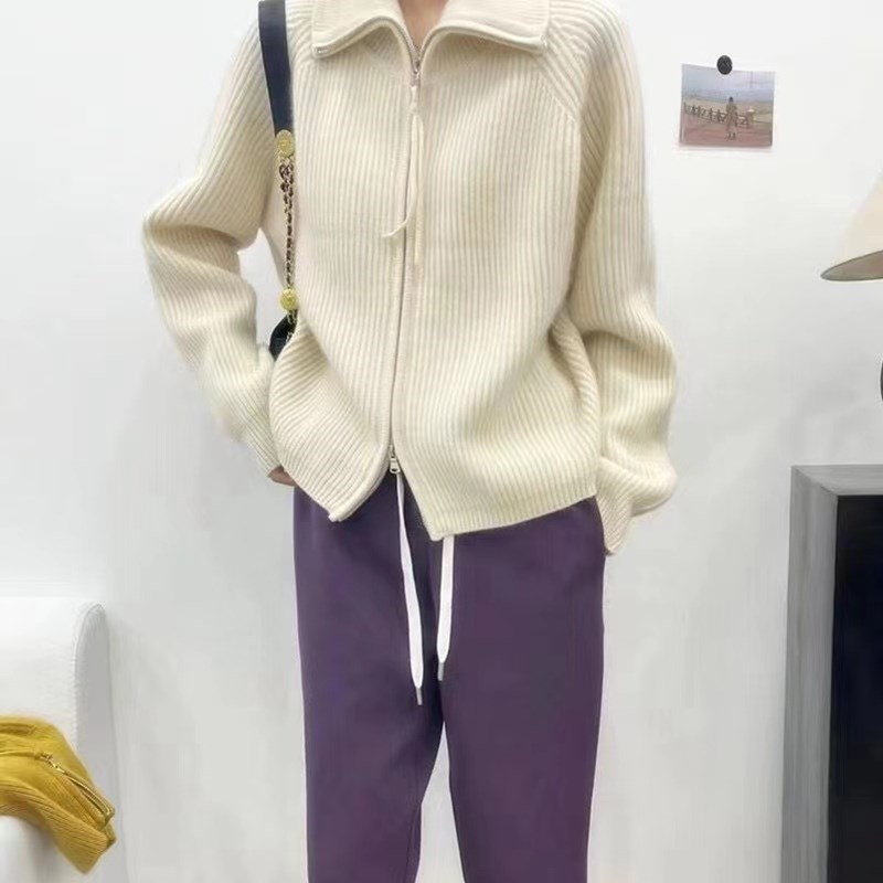 Главная страница > Тяжелая осень и зима новый кардиган женский 100 чистый свитер с лацканами на молнии вязаный свободный кашемировый жакет