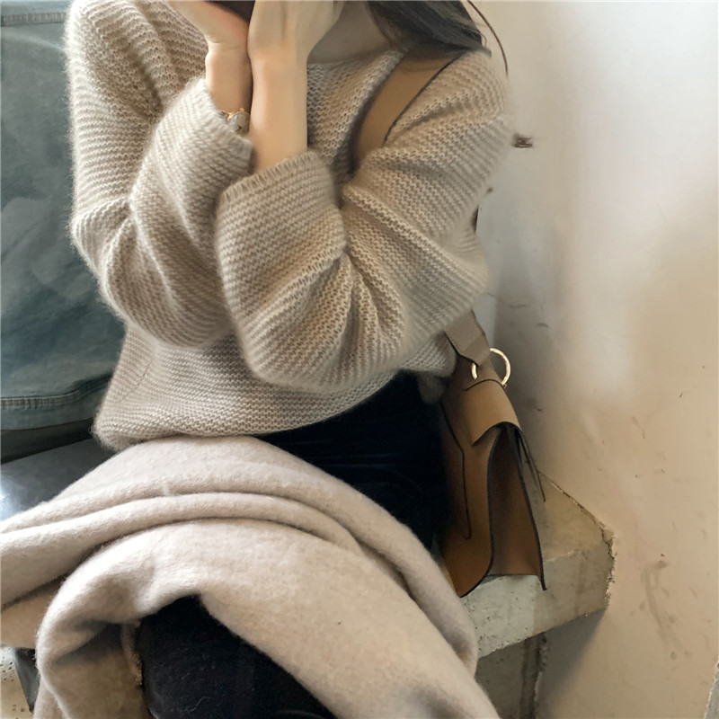 Главная страница > Новый стильный однотонный свитер для женщин на осень-зиму 2025 года, свободный крой, винтажный повседневный вязаный пуловер для многослойных образов.
