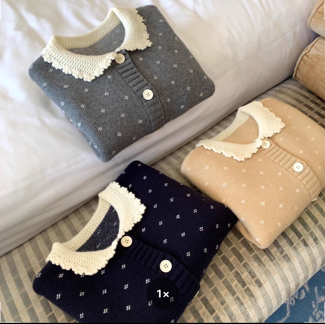 2024 осенний новый сладкий модный крюк с отворотом свитер с длинными рукавами женский свободный дикий кружевной свитер