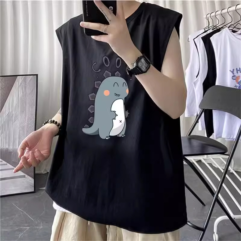 Главная страница > Летняя новая футболка без рукавов мужской тренд повседневный свободный жилет с плечом гонконгский стиль ins красивый дикий простой топ