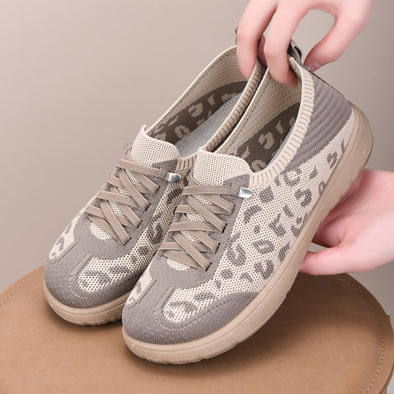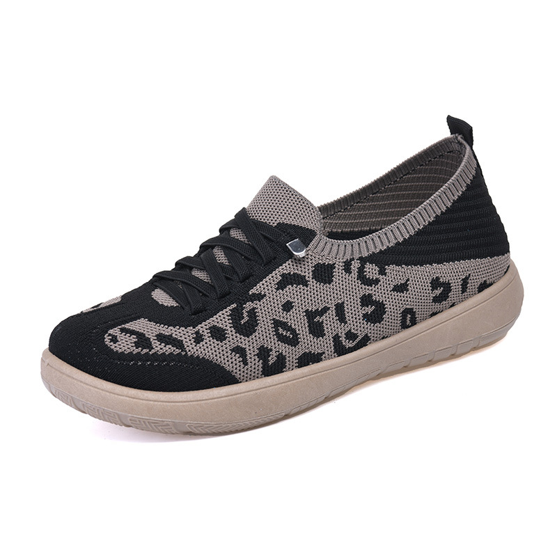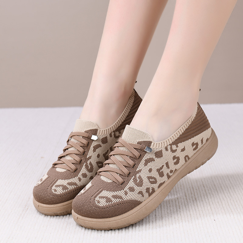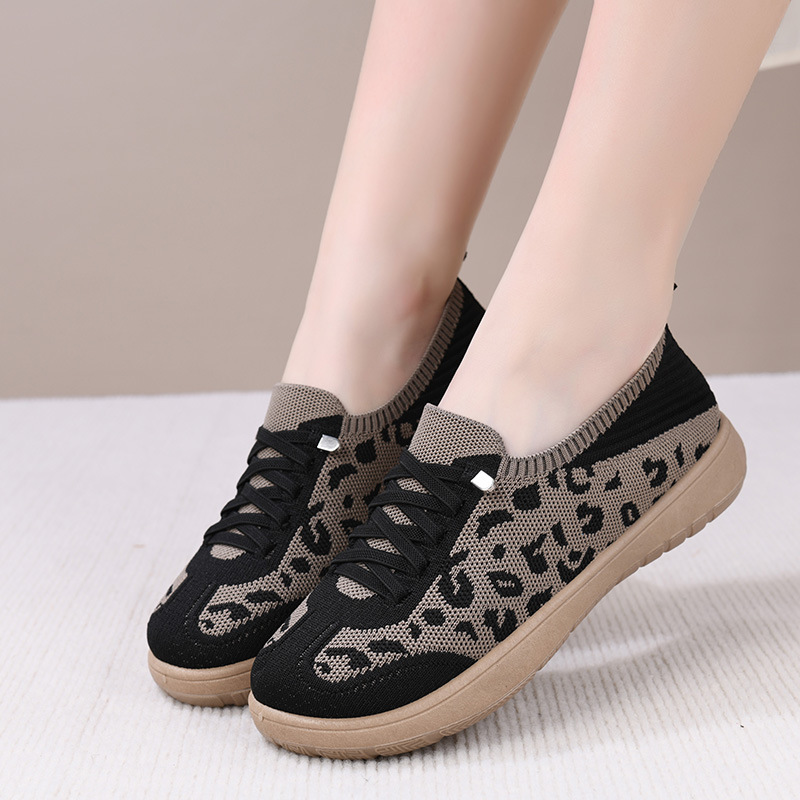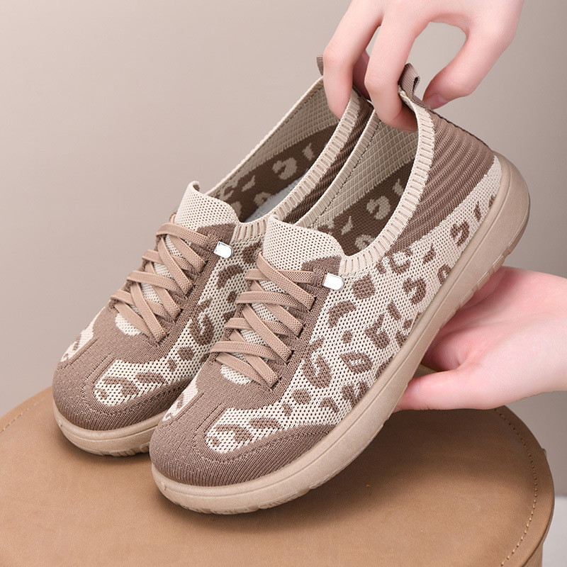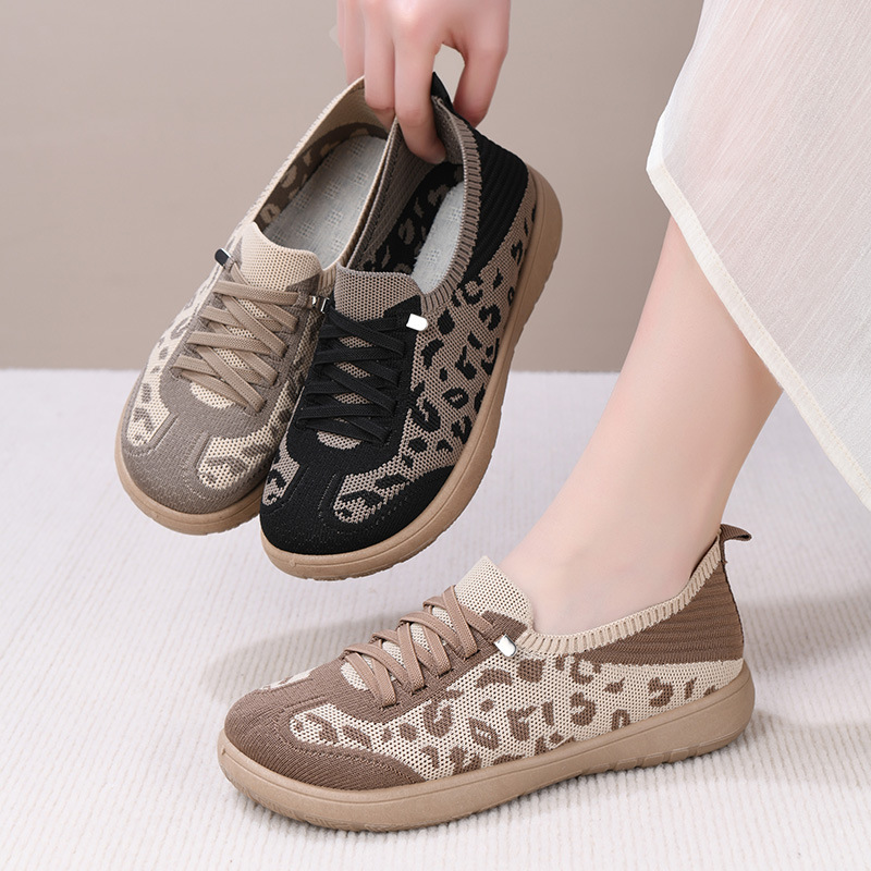 Тренировочная обувь с леопардовым принтом, весна и лето, новый стиль, сетчатая обувь на плоской подошве с мягкой подошвой, дышащая повседневная женская обувь, одношаговая обувь для мамы