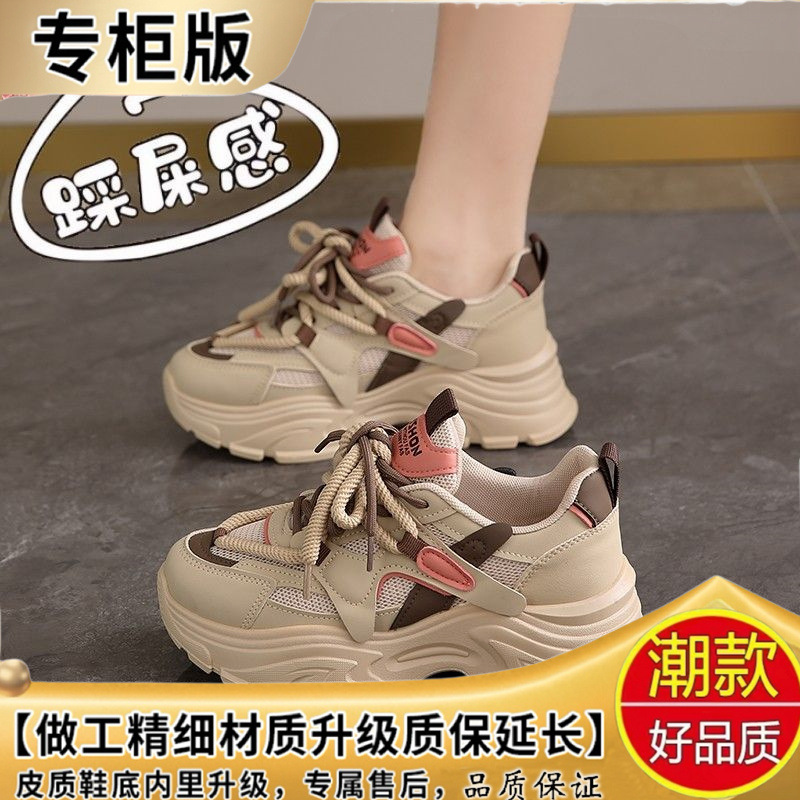 Главная страница > Мягкая кожаная сетка дышащая папочка обувь женская 2024 летняя новая дикая толстая подошва удобная нога маленькая супер легкая спортивная обувь