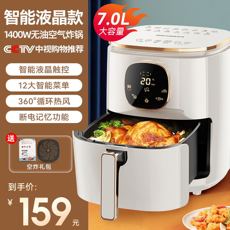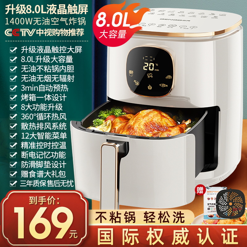 [Верхний сенсорный ЖК-экран/белый 8,0 л] Высокая огневая мощь 1400 Вт + импортный чип + безмасляный антипригарный вкладыш + 8 основных обновленных функций