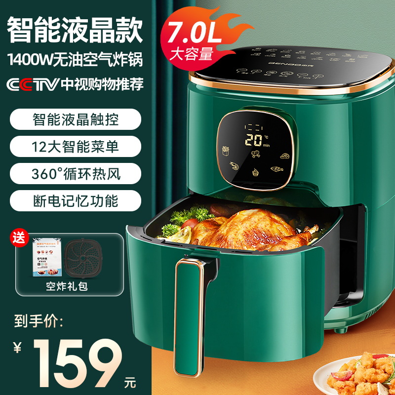 [Топ с сенсорным ЖК-экраном/зеленый 8,0 л] Большая огневая мощь 1400 Вт + импортный чип + безмасляная антипригарная подкладка + 8 основных обновленных функций