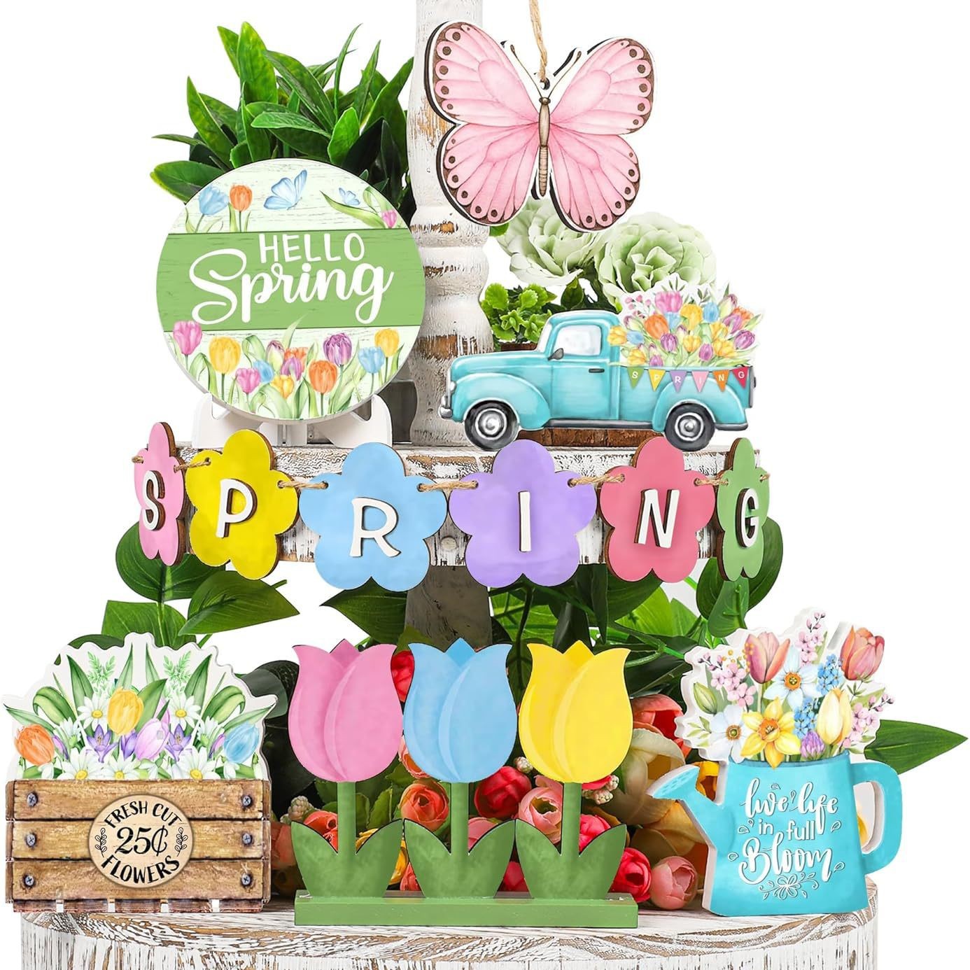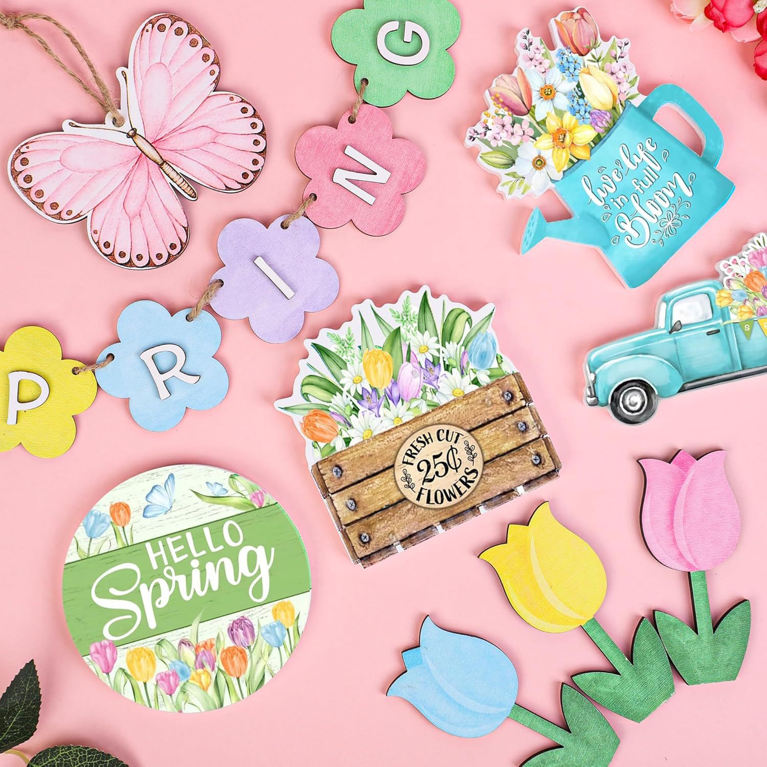 Главная страница > Деревянные слоистые поддоны декоративные Hello Spring акварель цветок бабочка тюльпан грузовик знак украшения фермы