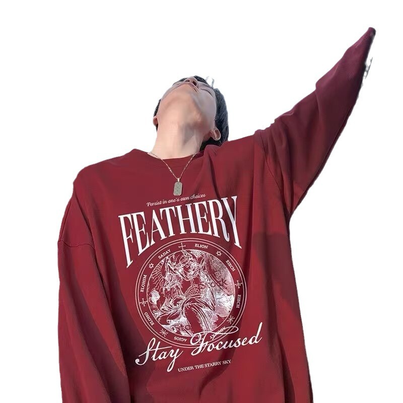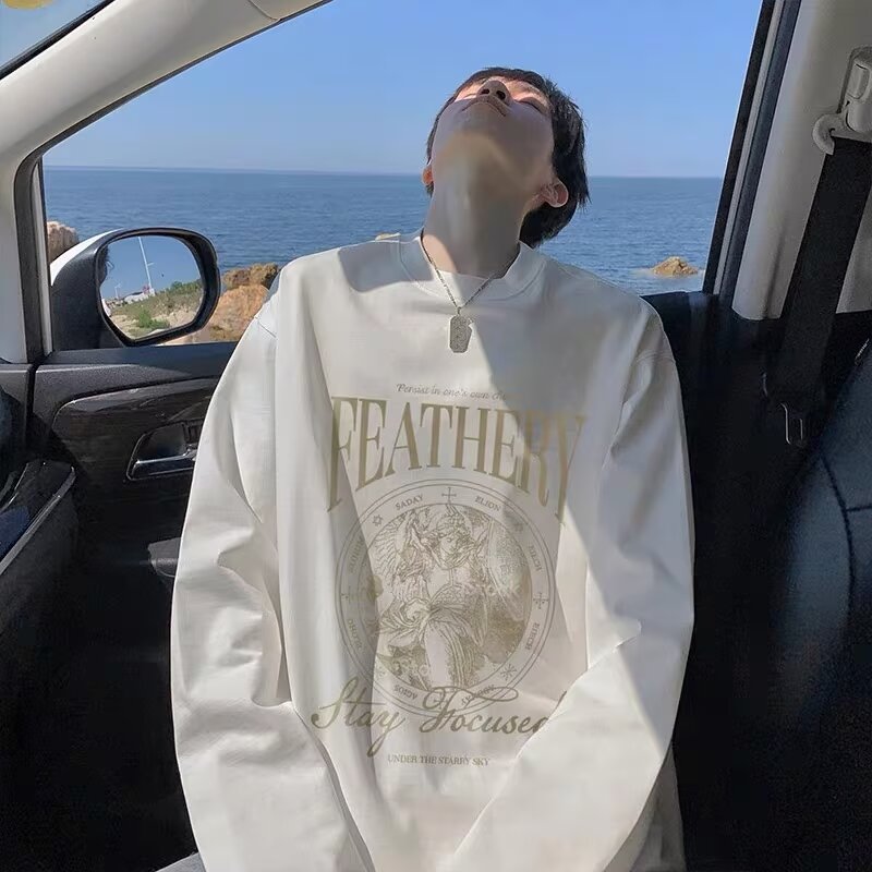 Главная страница > Тяжелый хлопок футболка с длинными рукавами мужская 2024 новая высокая улица приливная печать бренда свободная повседневная рубашка большого размера