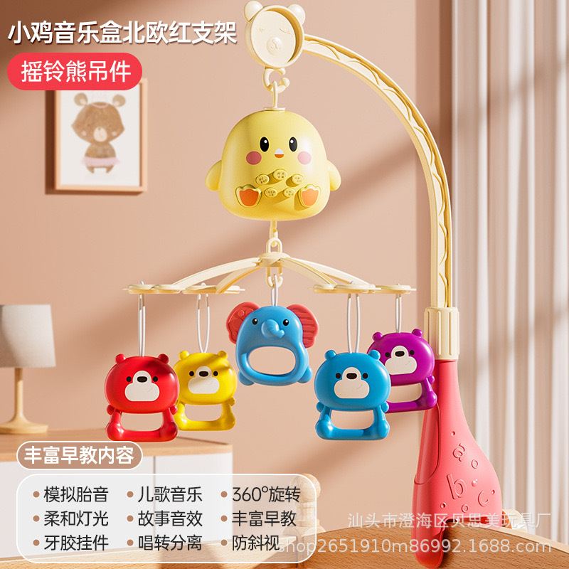 Цветная коробка, трансграничный колокольчик для кроватки с прорезывателем, милый цыпленок, детская музыка, вращающийся прикроватный колокольчик, игрушка для новорожденных