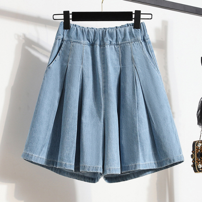 Шорты из ледяного шелка больших размеров, новинка 2025 года, европейские летние тонкие брюки с высокой талией для полных женщин, утягивающие широкие повседневные брюки, юбка для женщин
