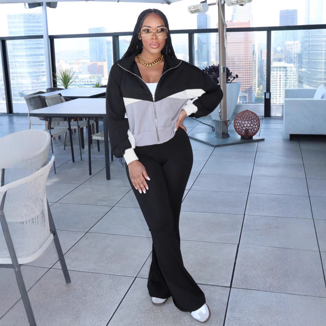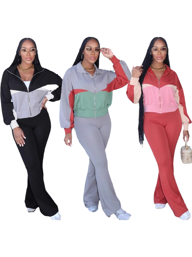 Главная страница > M3070 Европейский и Американский трансграничный Amazon осень и зима женская одежда из двух частей с длинными рукавами куртка на молнии узкие брюки расклешенные костюмы