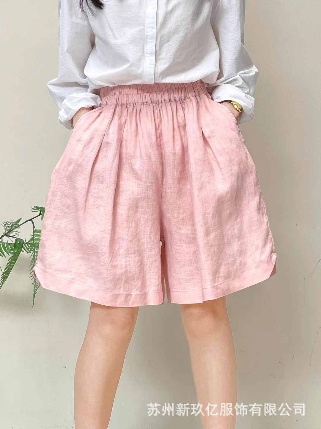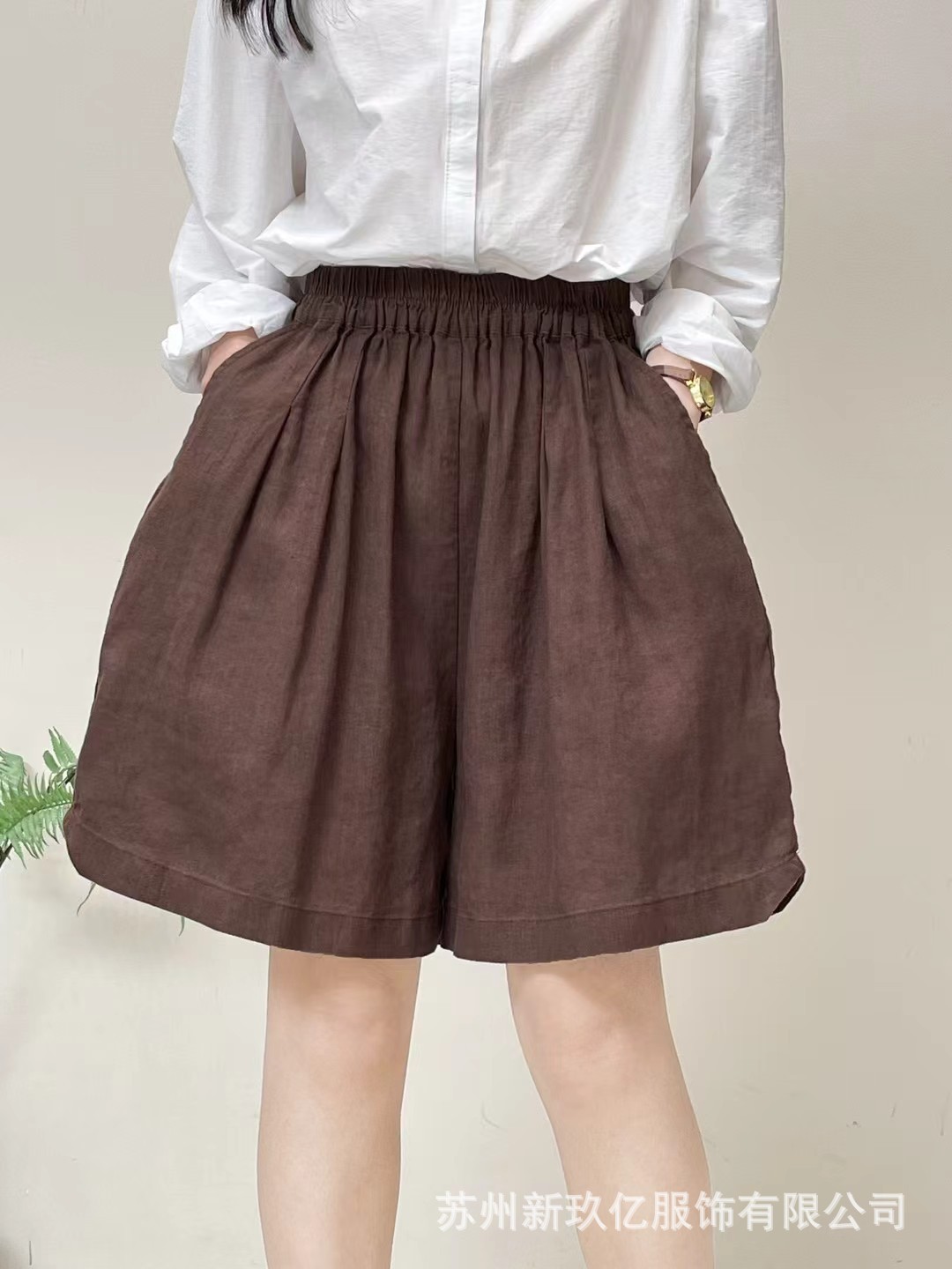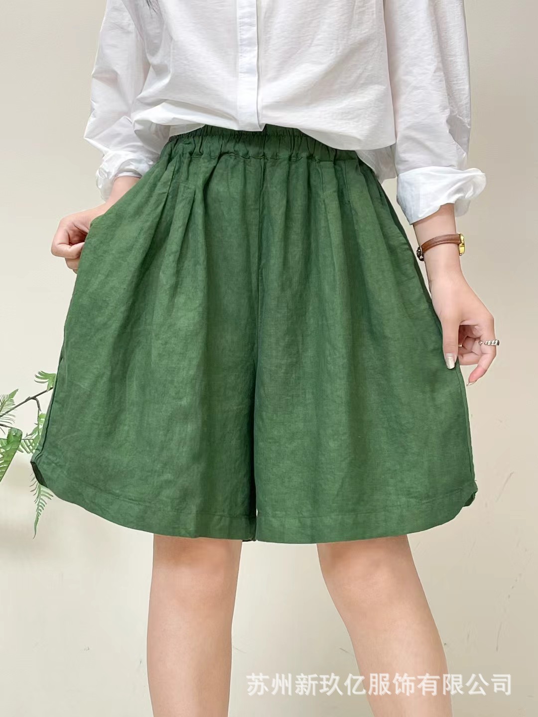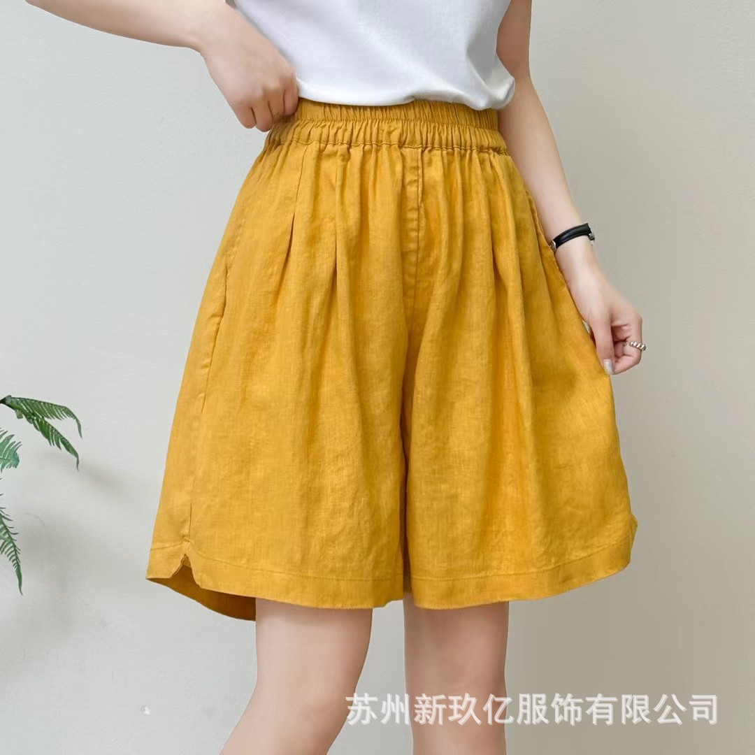 Главная страница > Летние свободные брюки больших размеров из льна 2025 года, однотонные, с эластичным поясом, широкие, повседневные, универсальные, с эластичным поясом, шорты для женщин