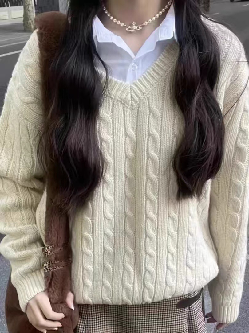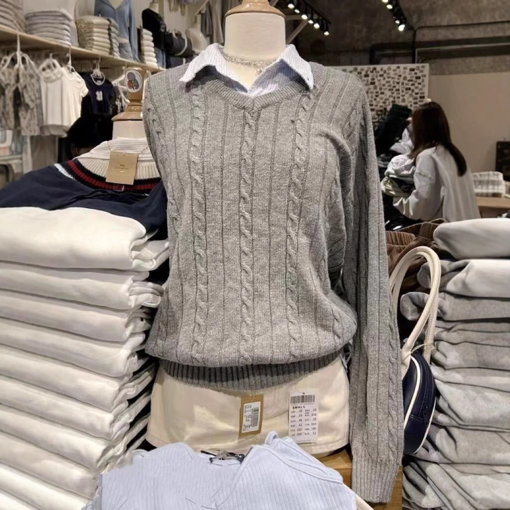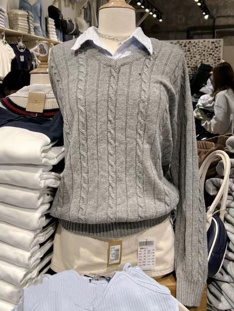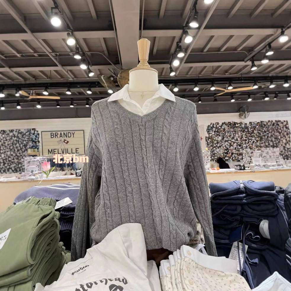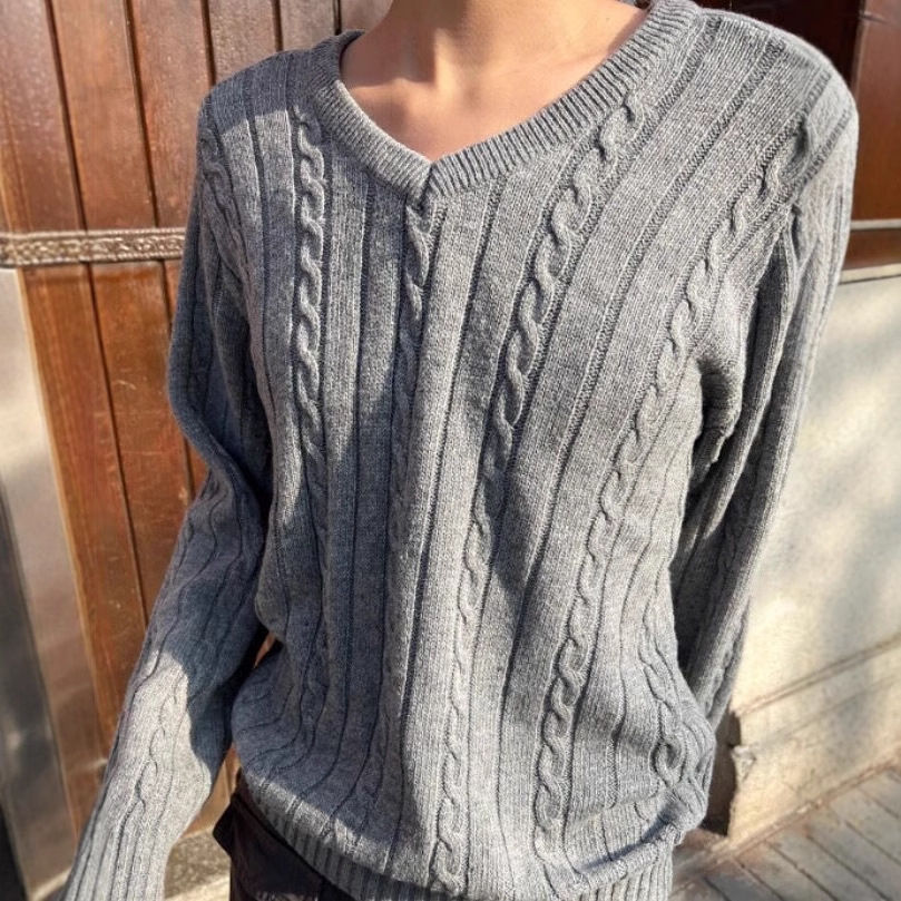 Главная страница > Свитер-пуловер женский вязаный BM style, осенне-зимний, серый, мягкий, с V-образным вырезом, в стиле lazy, модный, для многослойных образов