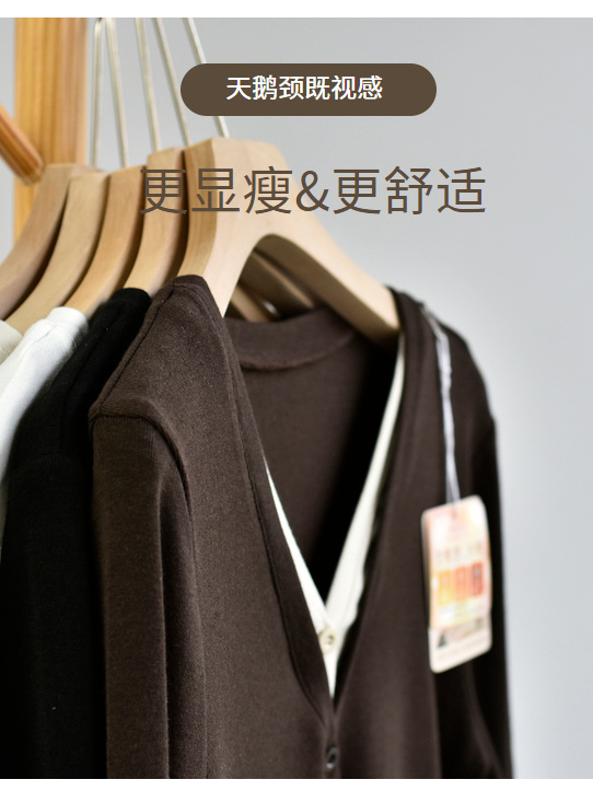 Главная страница > [Свитер с лебедем контрастного цвета] Осенне-зимний новый стильный вязаный кардиган из хлопка и акрила с v-образным вырезом и контрастной расцветкой, имитирующий двухслойный комплект.