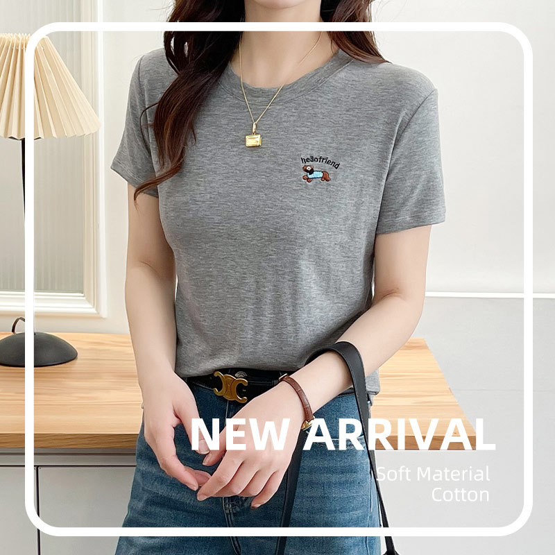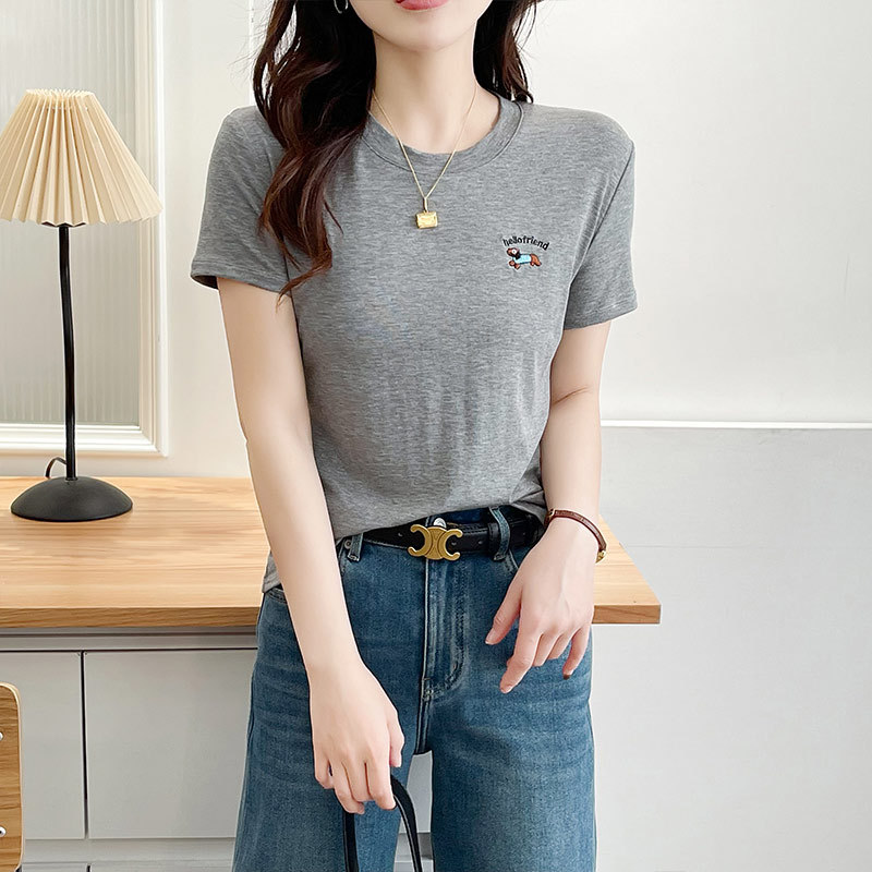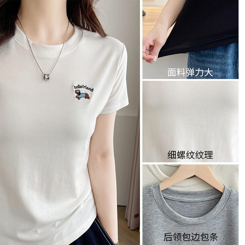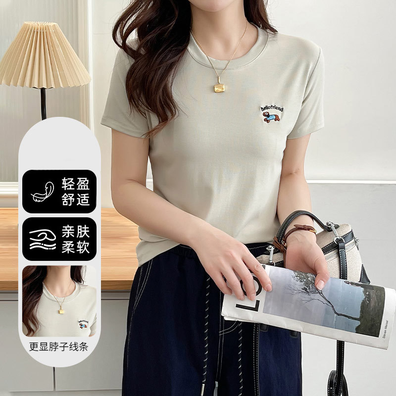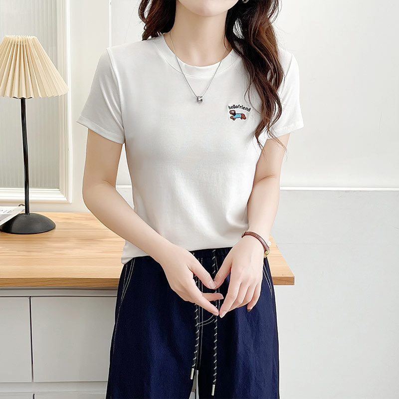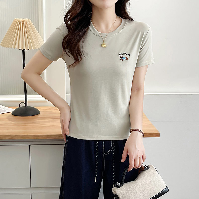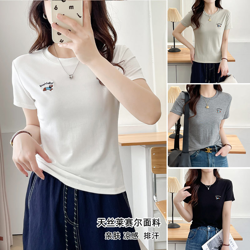 Главная страница > На плече новая тонкая вышивка футболка летняя женская с короткими рукавами Tiansi Leisel дикий с круглым вырезом короткий топ для женщин